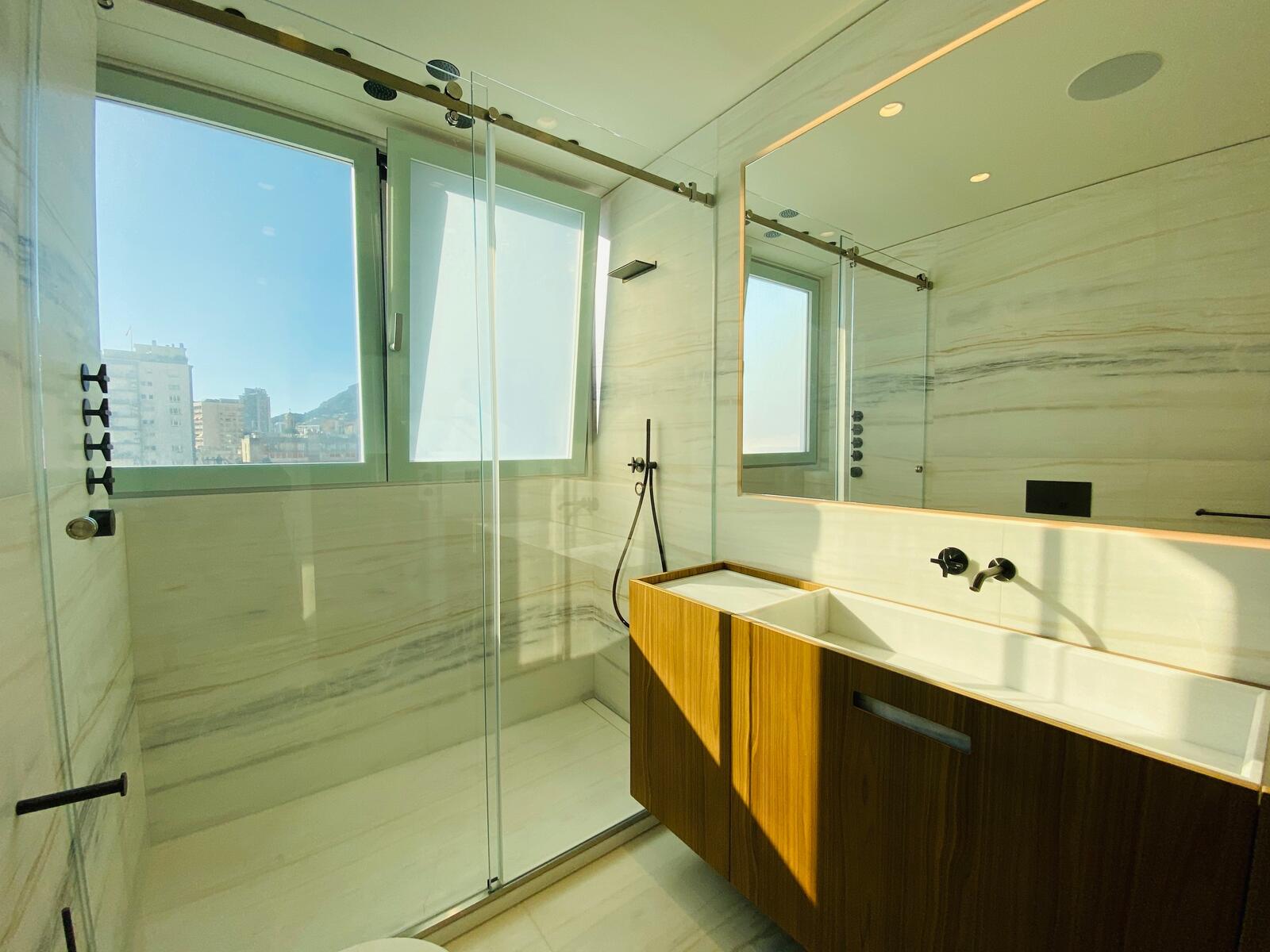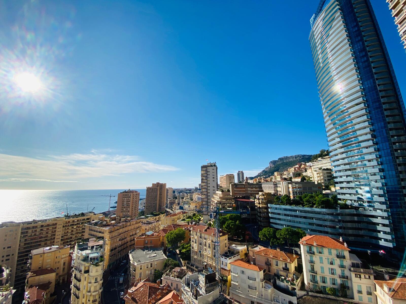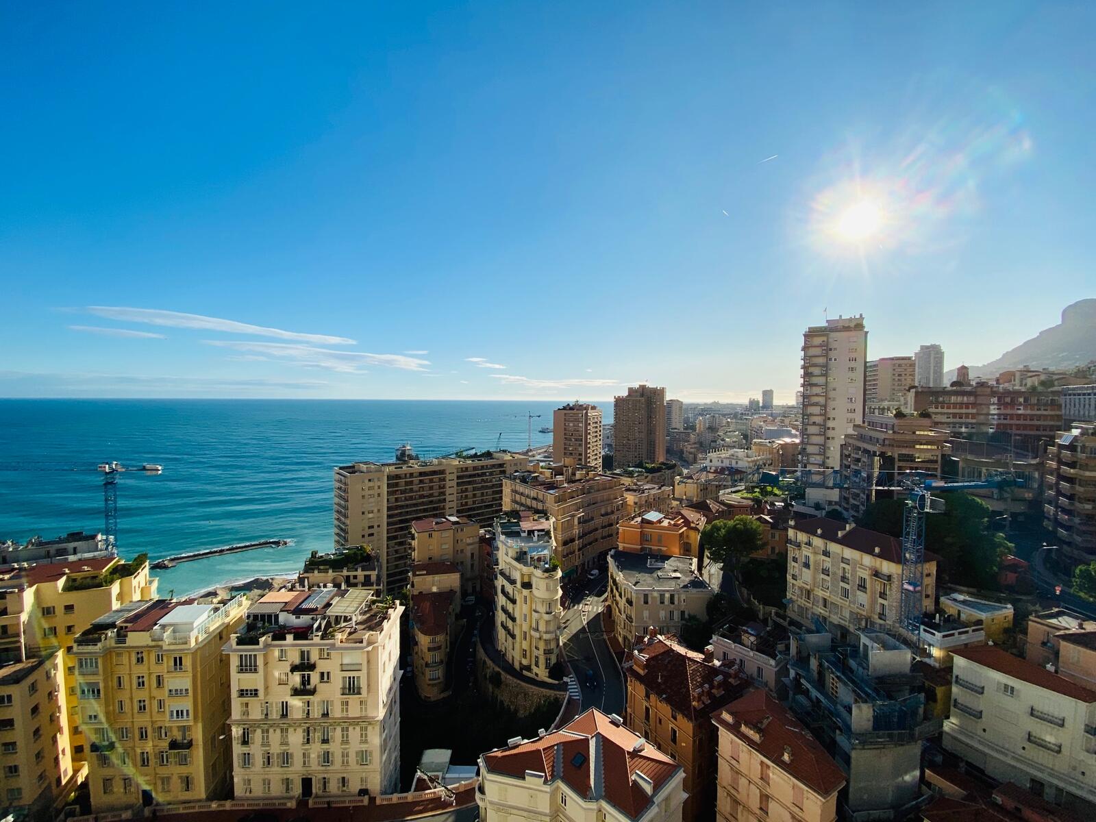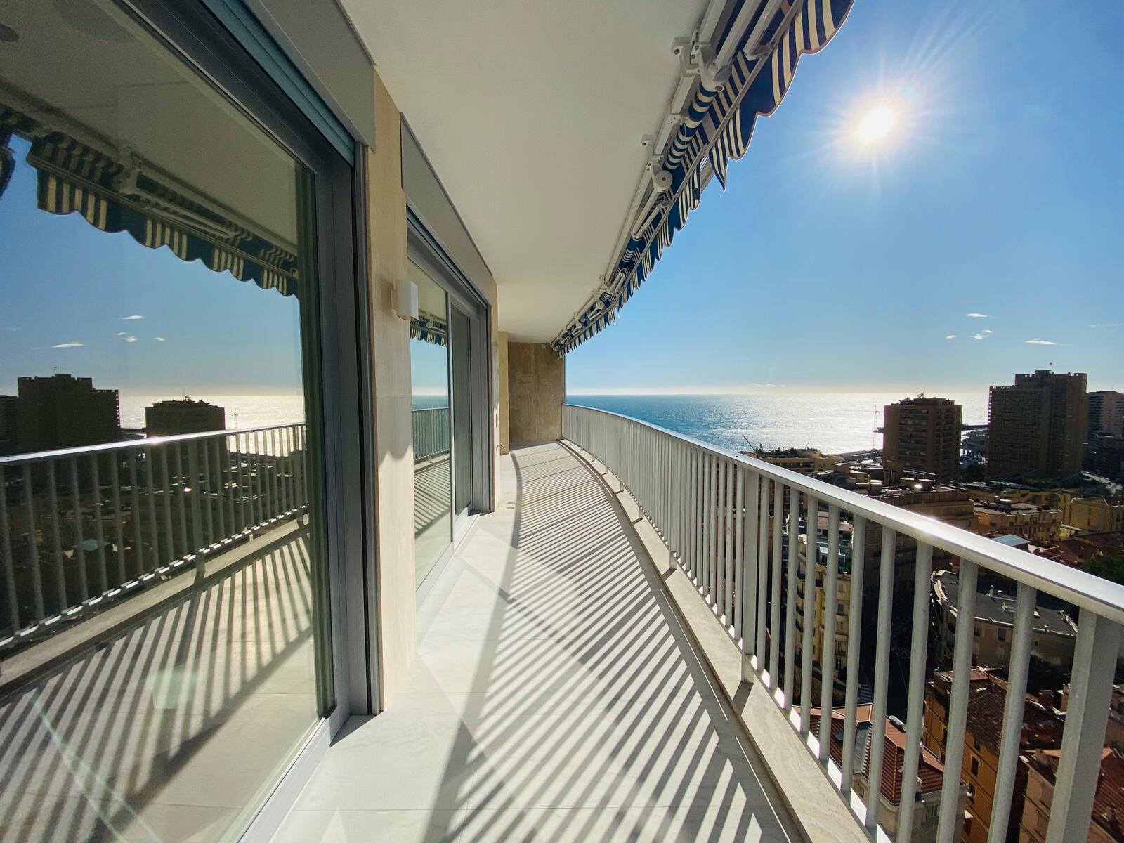 L'appartement, en étage élevé, offre une vue imprenable sur la mer et la ville.