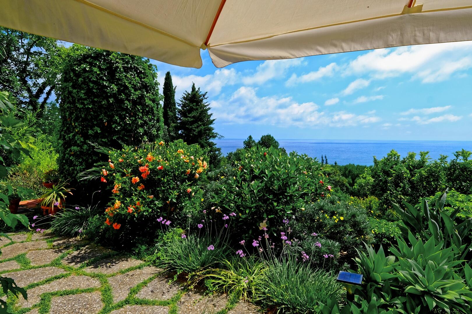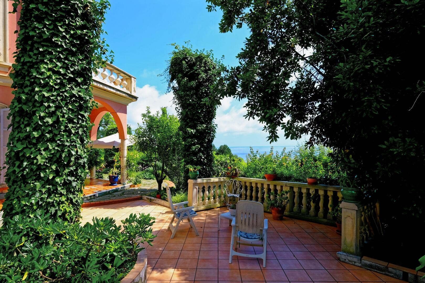 Proche de la frontière italienne et à 30 minutes de voiture de Monaco, cette charmante villa d’époque se situe dans un endroit privilégié et relaxant, offrant une vue ravissante sur la mer et le Cap Mortola. Composée d’une grande villa avec accès direct à la mer ainsi que d’une petite maison invitée/gardien d’environ 80m², la propriété dispose de 800m² habitables ainsi que de 60m² de terrasse et 1.1 hectare de parc privé qui possède de nombreuse variété des plantes et fleures.