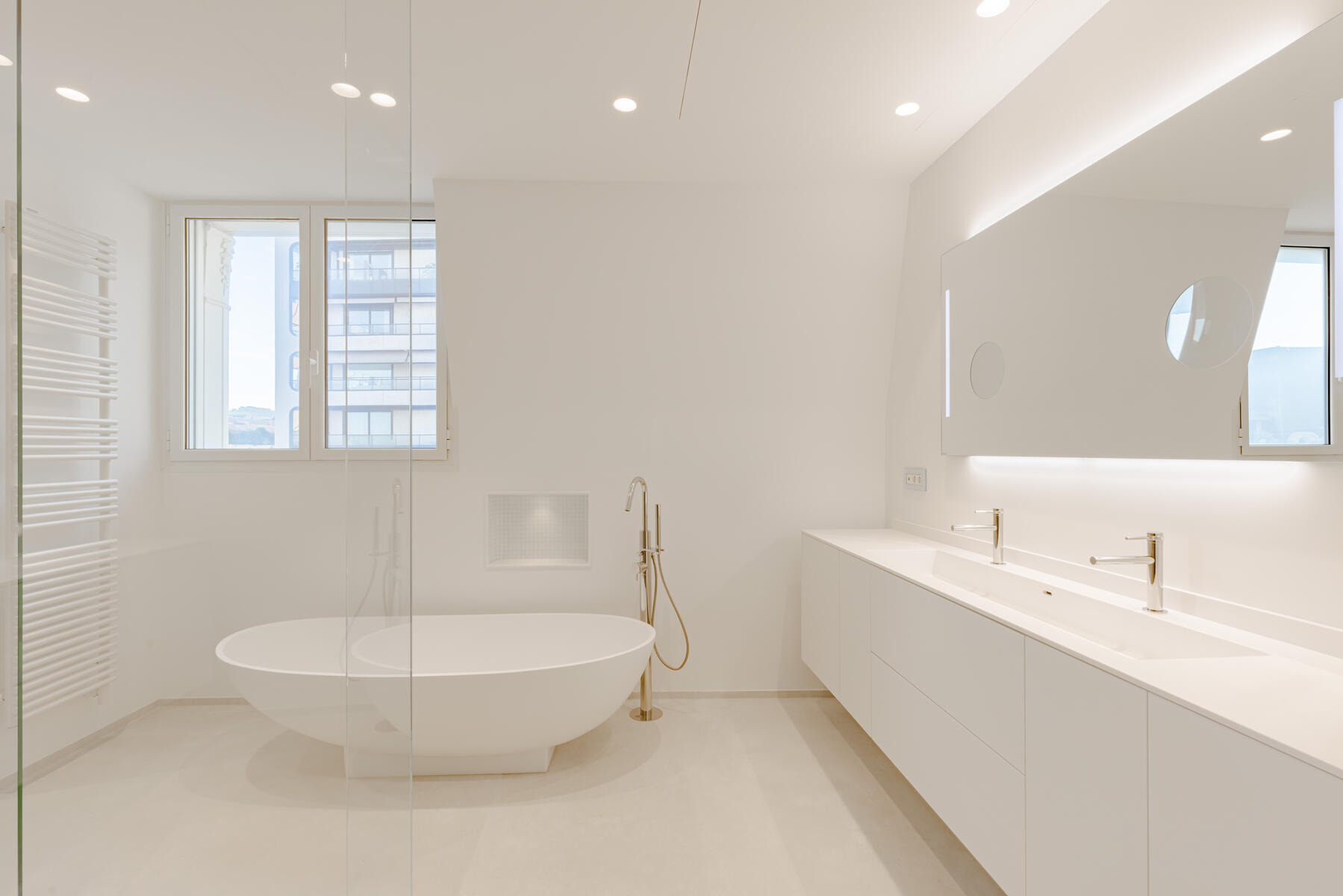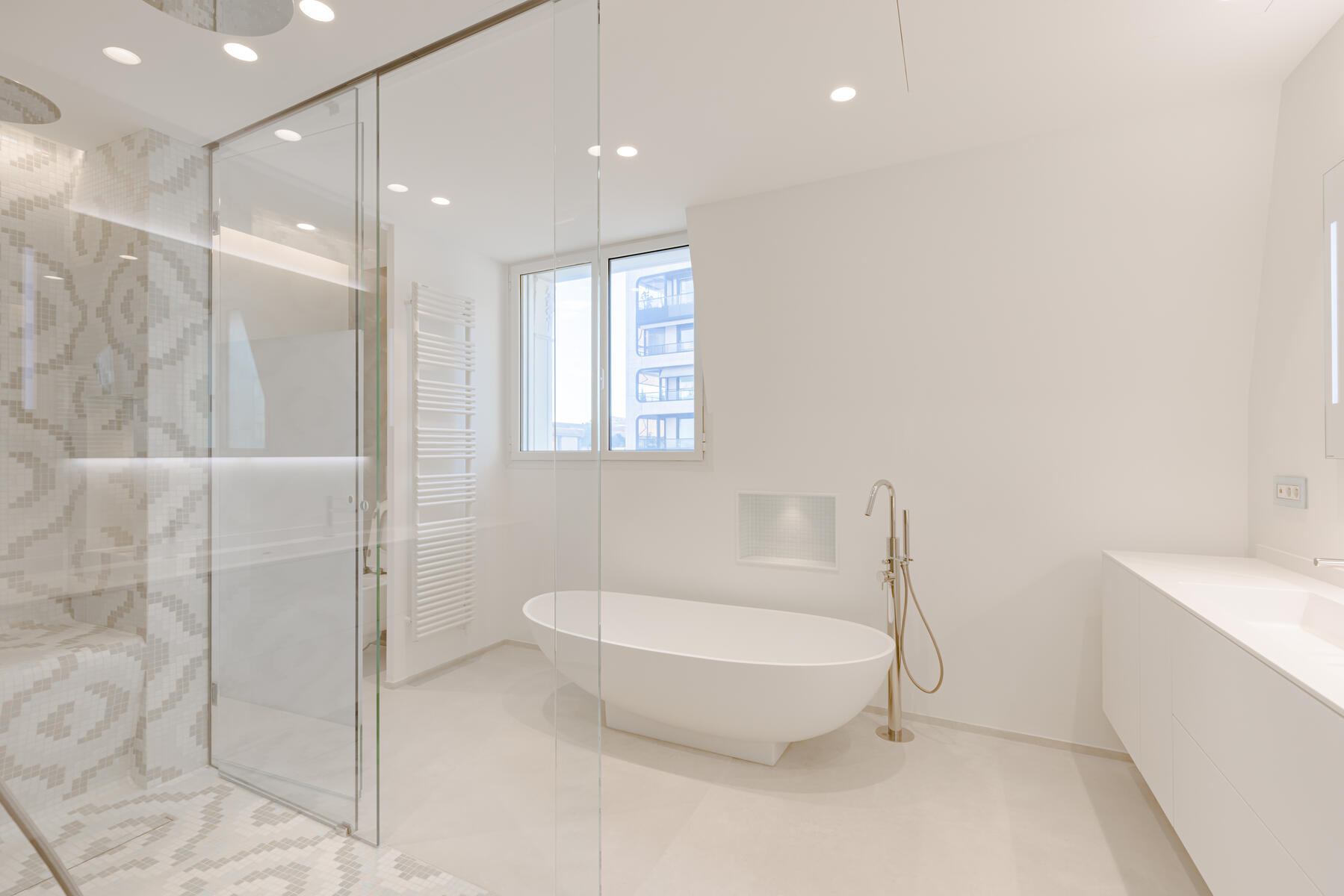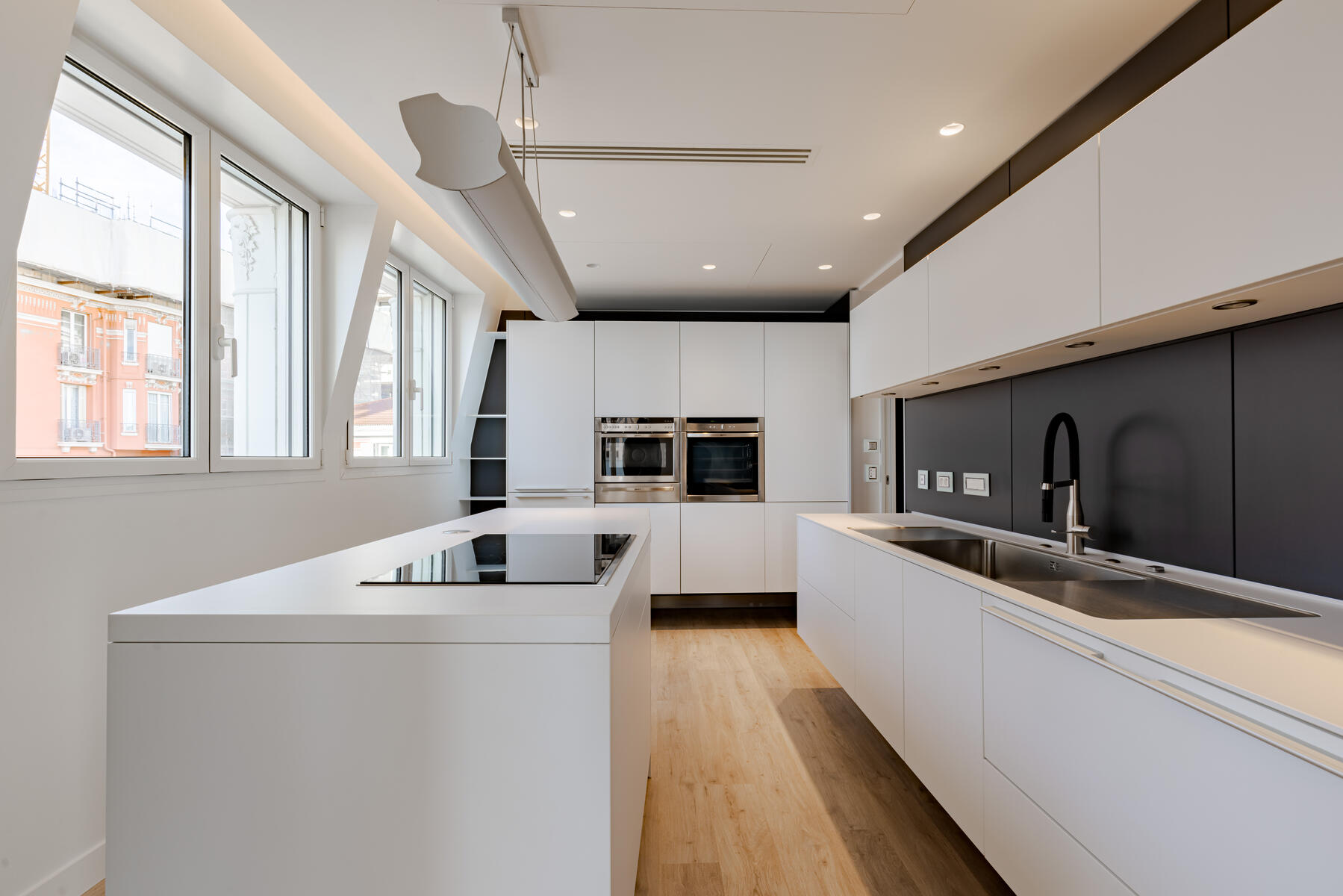 L’appartement comprend un vaste salon et salle à manger ouvrant sur une terrasse avec une vue imprenable sur la mer. La cuisine "BULTHAUP", entièrement équipée, est dotée d’appareils haut de gamme "NEFF" et d’une télévision intégrée, alliant esthétisme et fonctionnalité. La chambre principale, équipée d’une télévision, s’ouvre sur une terrasse privée et dispose de nombreux placards avec éclairage automatique. Sa salle de bain attenante est un véritable chef-d'œuvre, avec une double douche, une baignoire, un miroir anti-buée avec télévision intégrée, et des finitions raffinées.