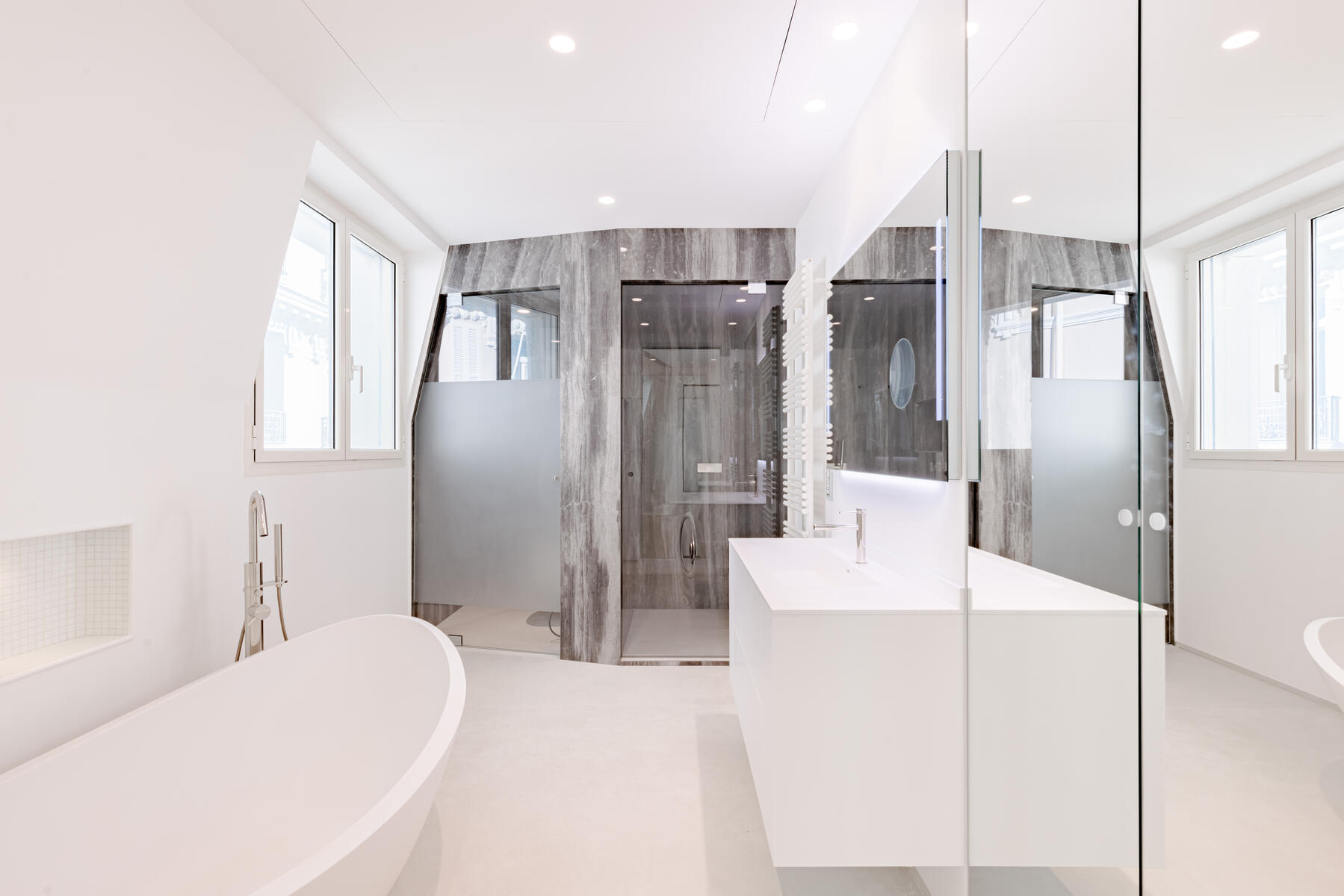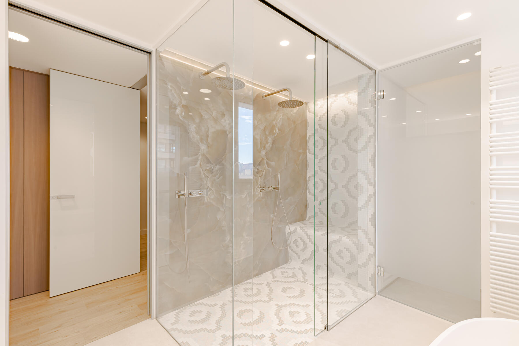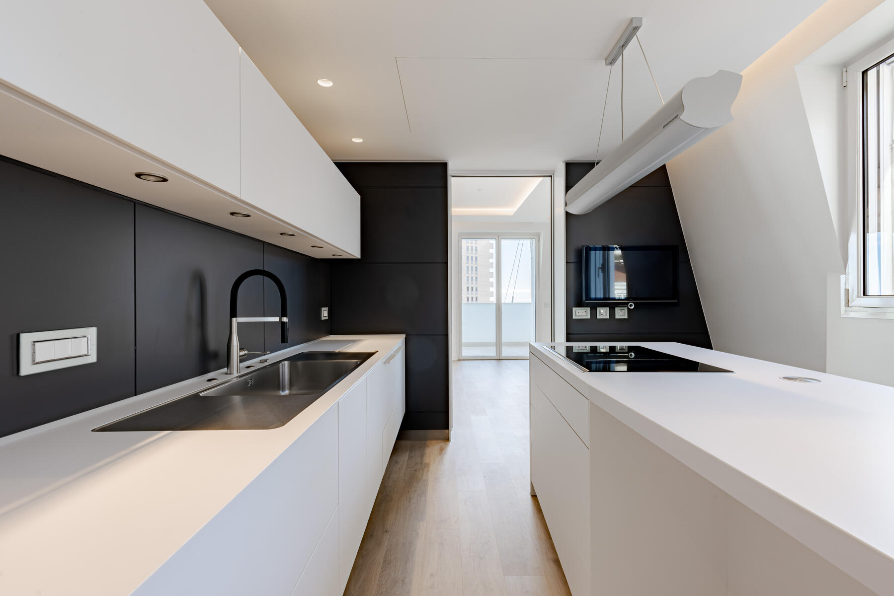 L’appartement comprend un vaste salon et salle à manger ouvrant sur une terrasse avec une vue imprenable sur la mer. La cuisine "BULTHAUP", entièrement équipée, est dotée d’appareils haut de gamme "NEFF" et d’une télévision intégrée, alliant esthétisme et fonctionnalité. La chambre principale, équipée d’une télévision, s’ouvre sur une terrasse privée et dispose de nombreux placards avec éclairage automatique. Sa salle de bain attenante est un véritable chef-d'œuvre, avec une double douche, une baignoire, un miroir anti-buée avec télévision intégrée, et des finitions raffinées.