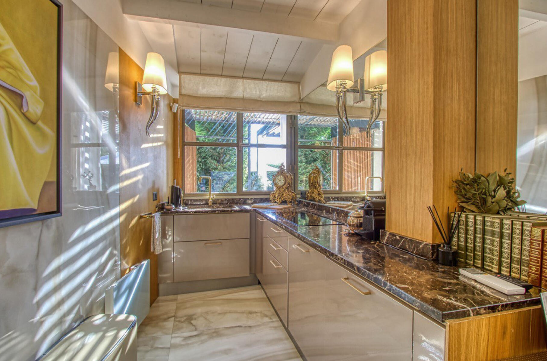 Un séjour lumineux avec cuisine ouverte offrant une vue imprenable sur le jardin.