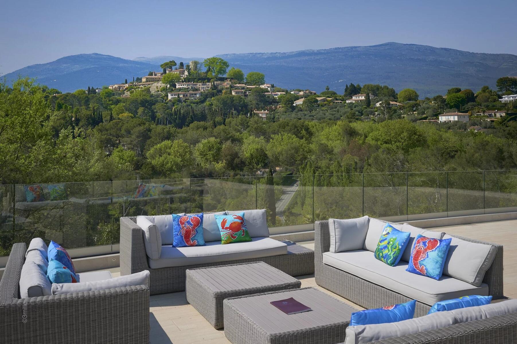 Élégante propriété d’inspiration Couelle au calme absolu avec vue sur le Château de Castellaras Située au calme absolu, au cœur d’un parc de plus d’un hectare au sein d’un domaine recherché, cette propriété d’inspiration Couelle offre de beaux volumes et une vue dégagée sur les collines environnantes ainsi que sur le Château de Castellaras, dans un environnement préservé.