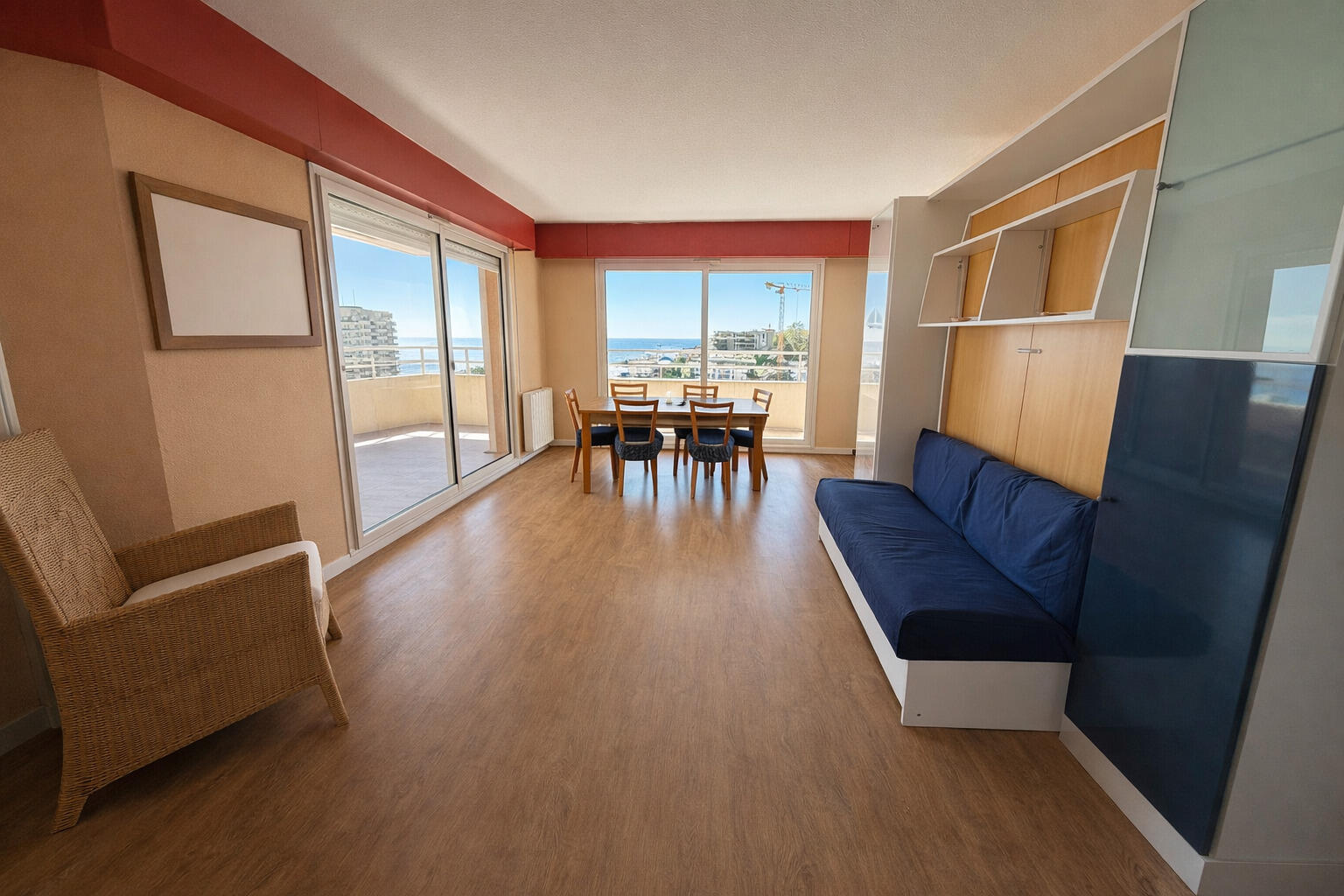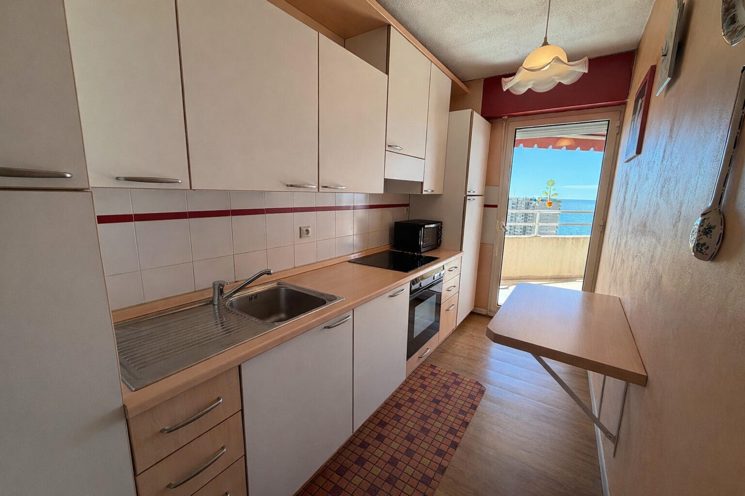 Un appartement de deux pièces lumineux avec terrasse en exposition sud, vue mer, situé en étage élevé, il se compose comme suit :