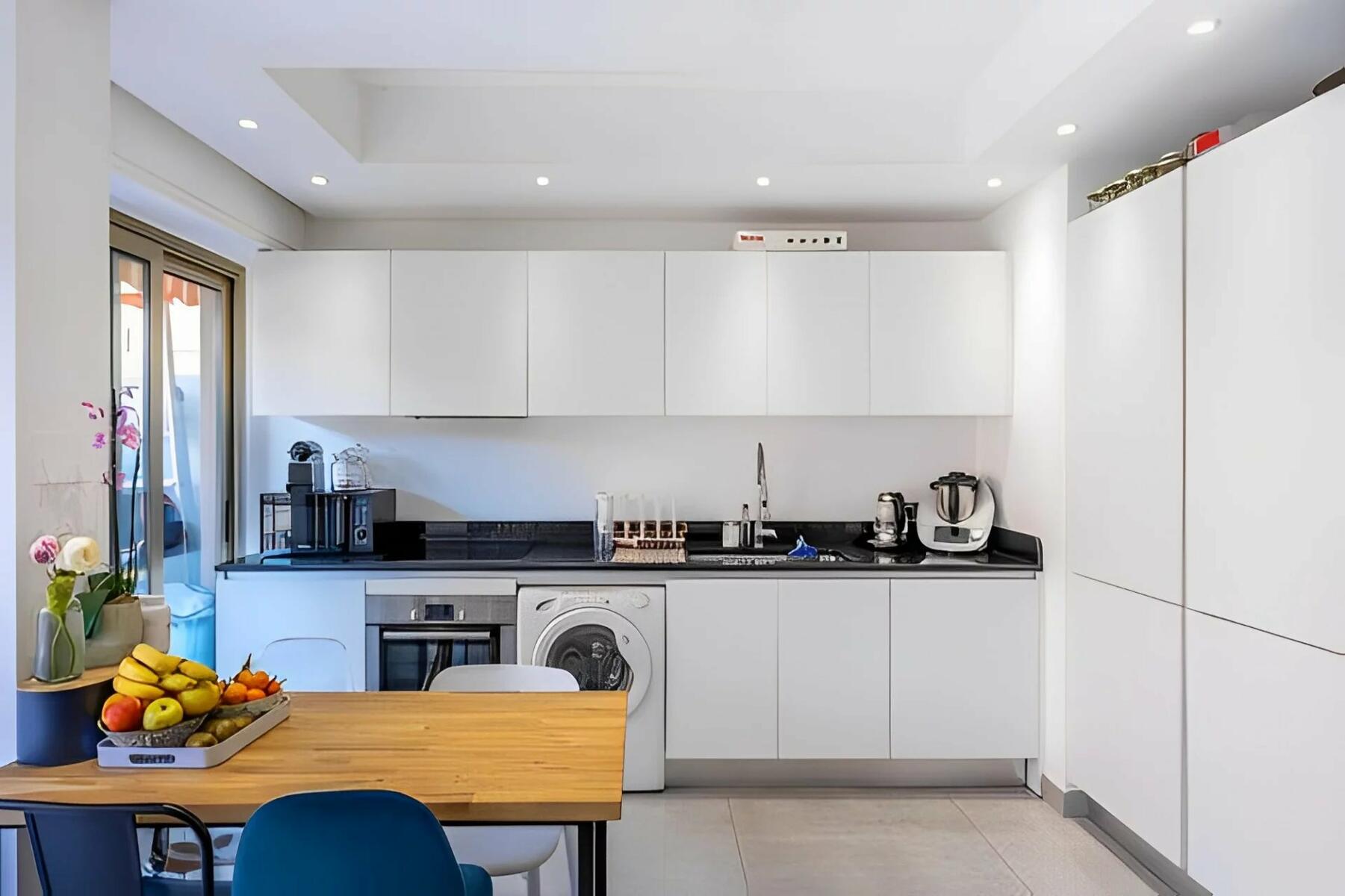 Lumineux, épuré, délicat - à quelques pas du Port Hercules, cet appartement a été entièrement rénové en utilisant des matériaux haut de gamme et un soin particulier des finitions.