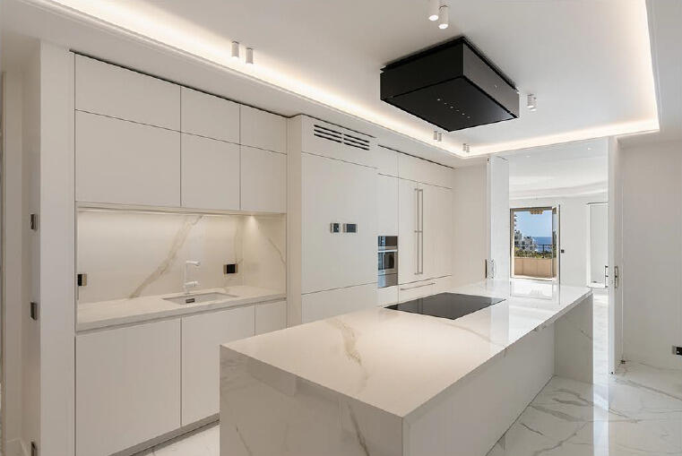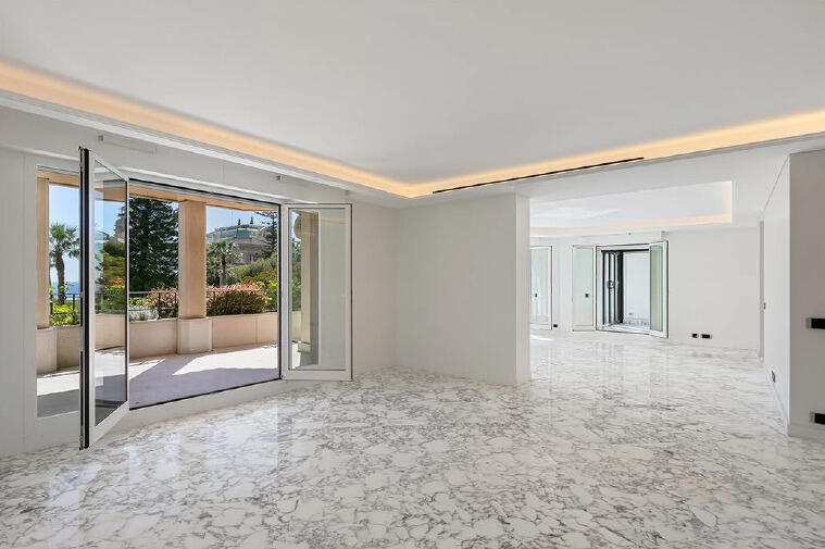 Questo appartamento ha recentemente beneficiato di una ristrutturazione e ridisegno sotto la direzione di Didier Gomez, rinomato decoratore e designer parigino, noto per le sue creazioni presso il Ristorante Yoshi dell'Hotel Metropole e la Spa Metropole by Givenchy. I lavori furono eseguiti da Segraeti Interiors, sotto la supervisione di Fabrice Notari, l'architetto del condominio. È importante notare che l'appartamento, inclusa la veranda, sarà consegnato senza arredamento.