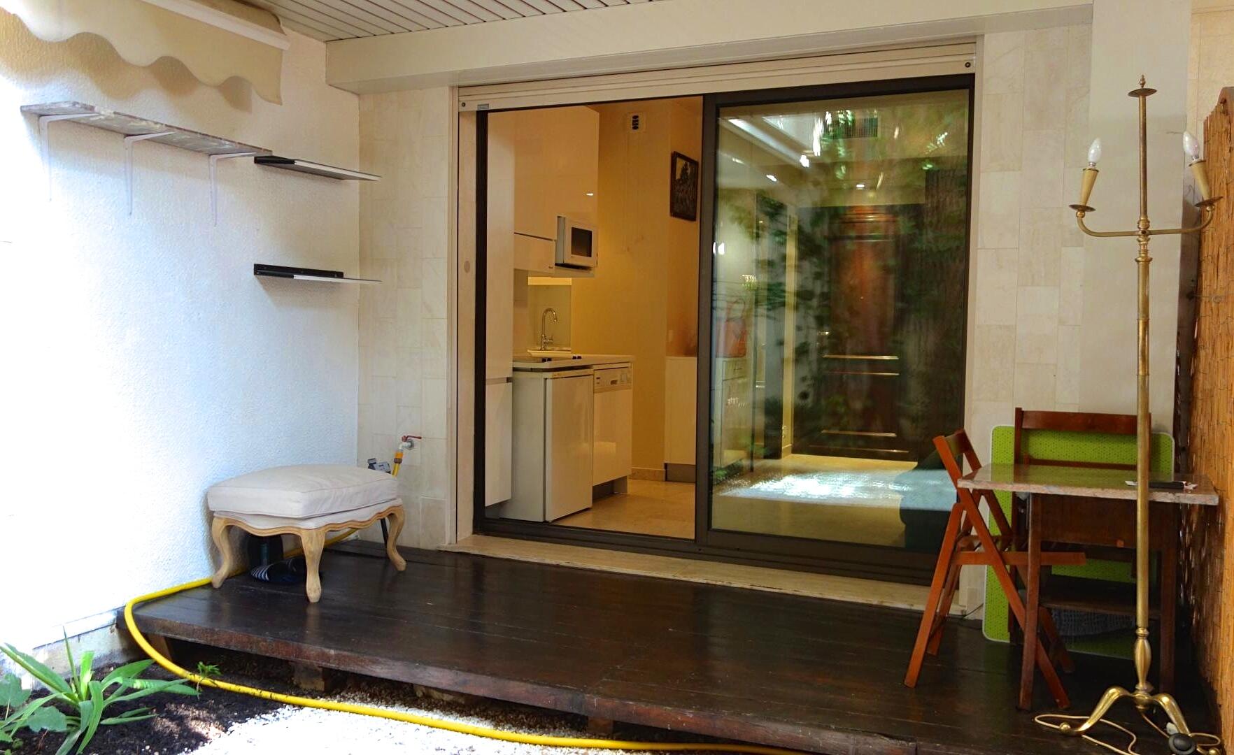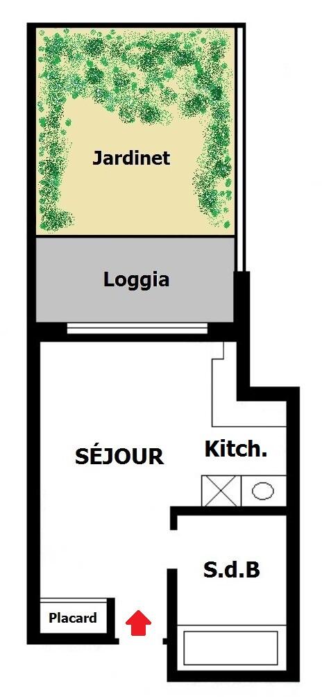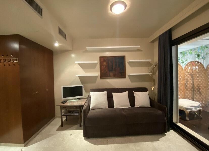 Ingresso, soggiorno, bagno, kitchenette, armadi a muro, aria condizionata, loggia, giardinetto