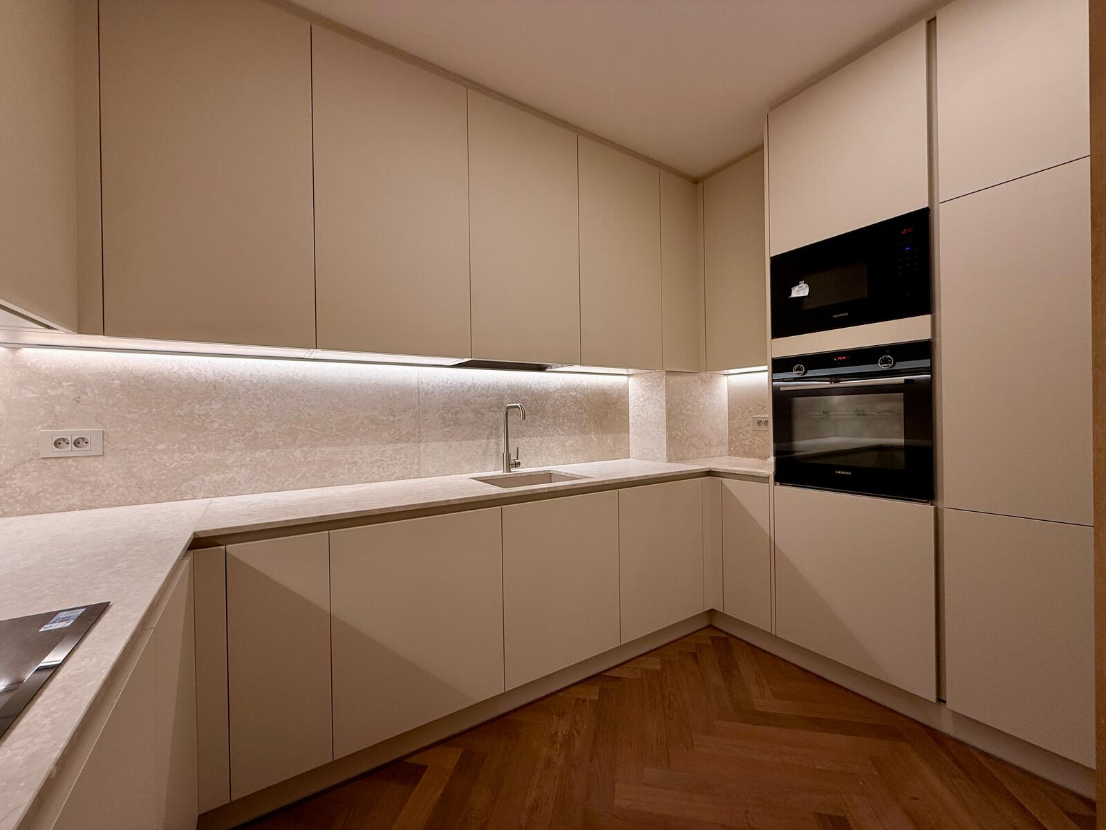 Appartamento ristrutturato con servizi di lusso, 2 camere da letto con bagno privato, ampio soggiorno, cucina con dispensa e lavanderia. Situato sul porto di Monaco.