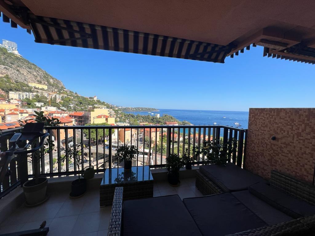 In una residenza con piscina, sauna, palestra e portiere aperto 24 ore su 24, bellissimo appartamento con 2 stanze con terrazza e vista sul mare.
