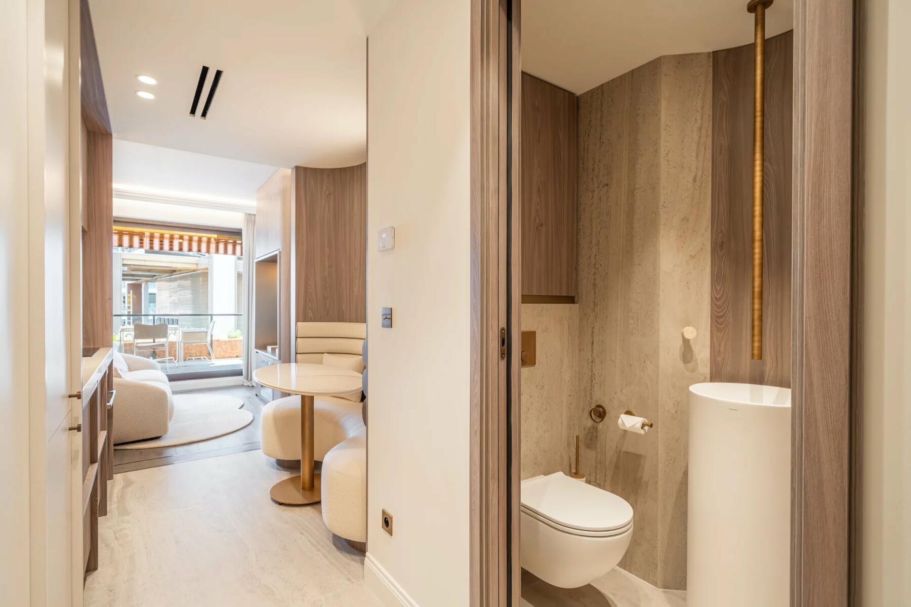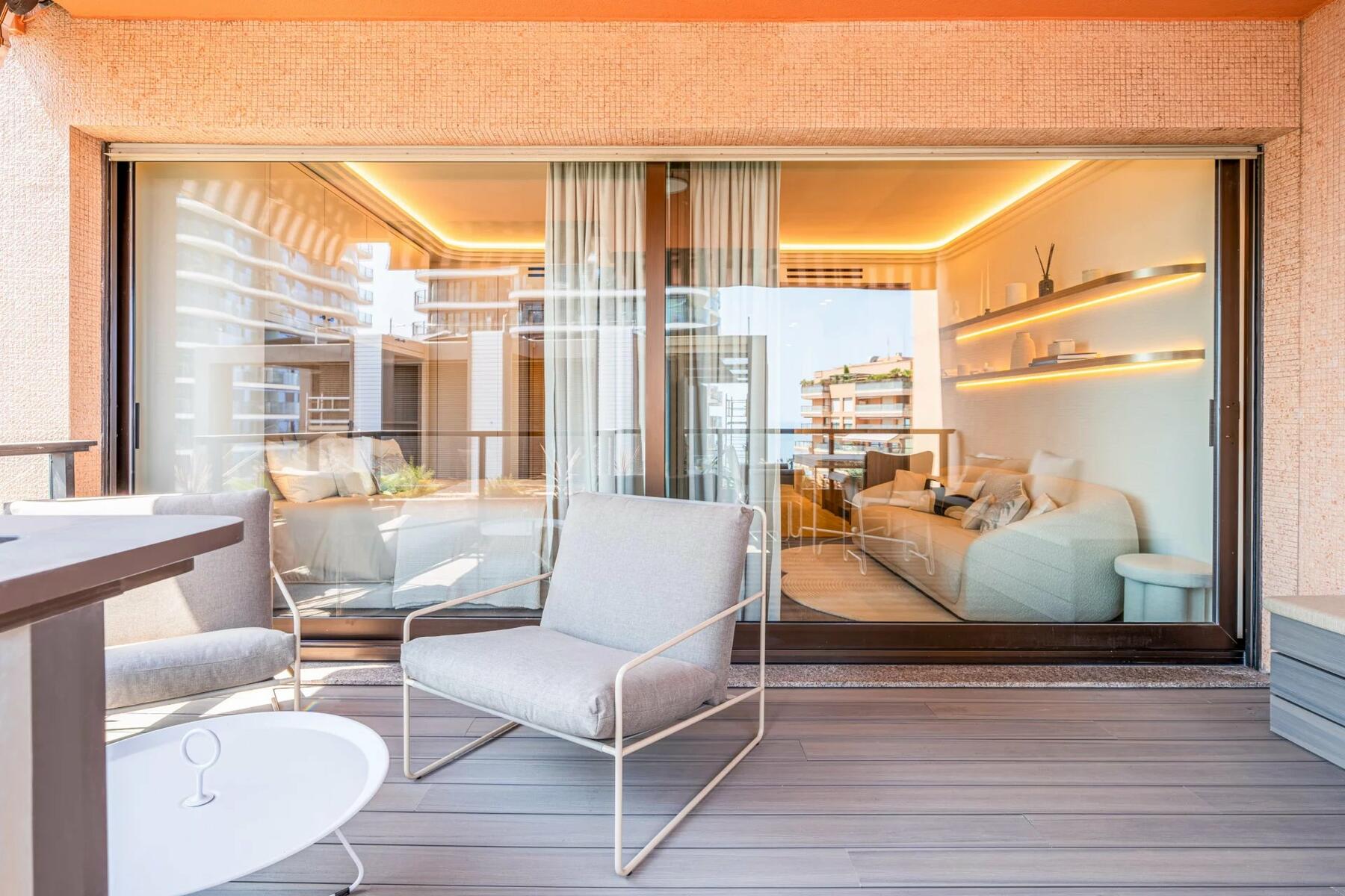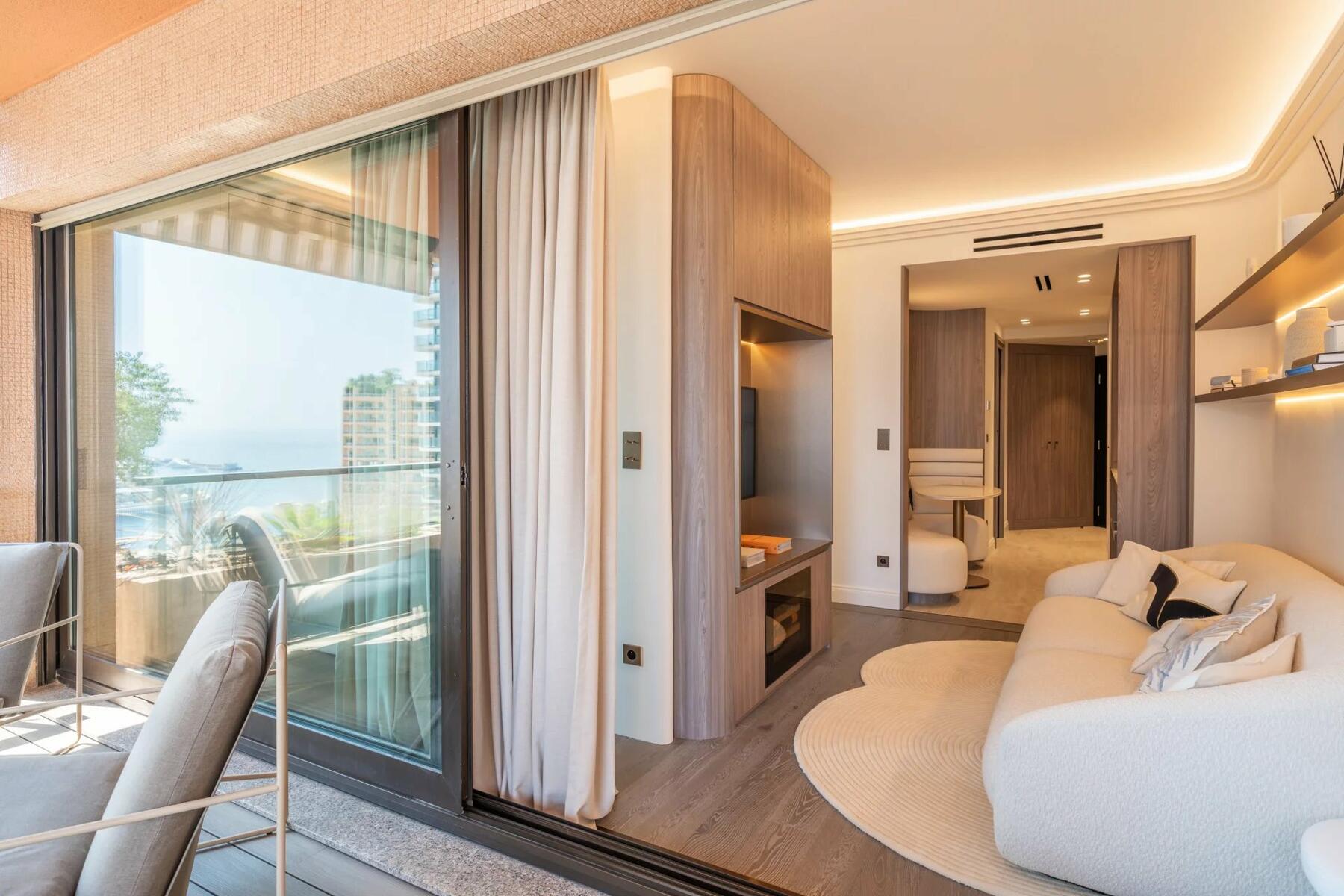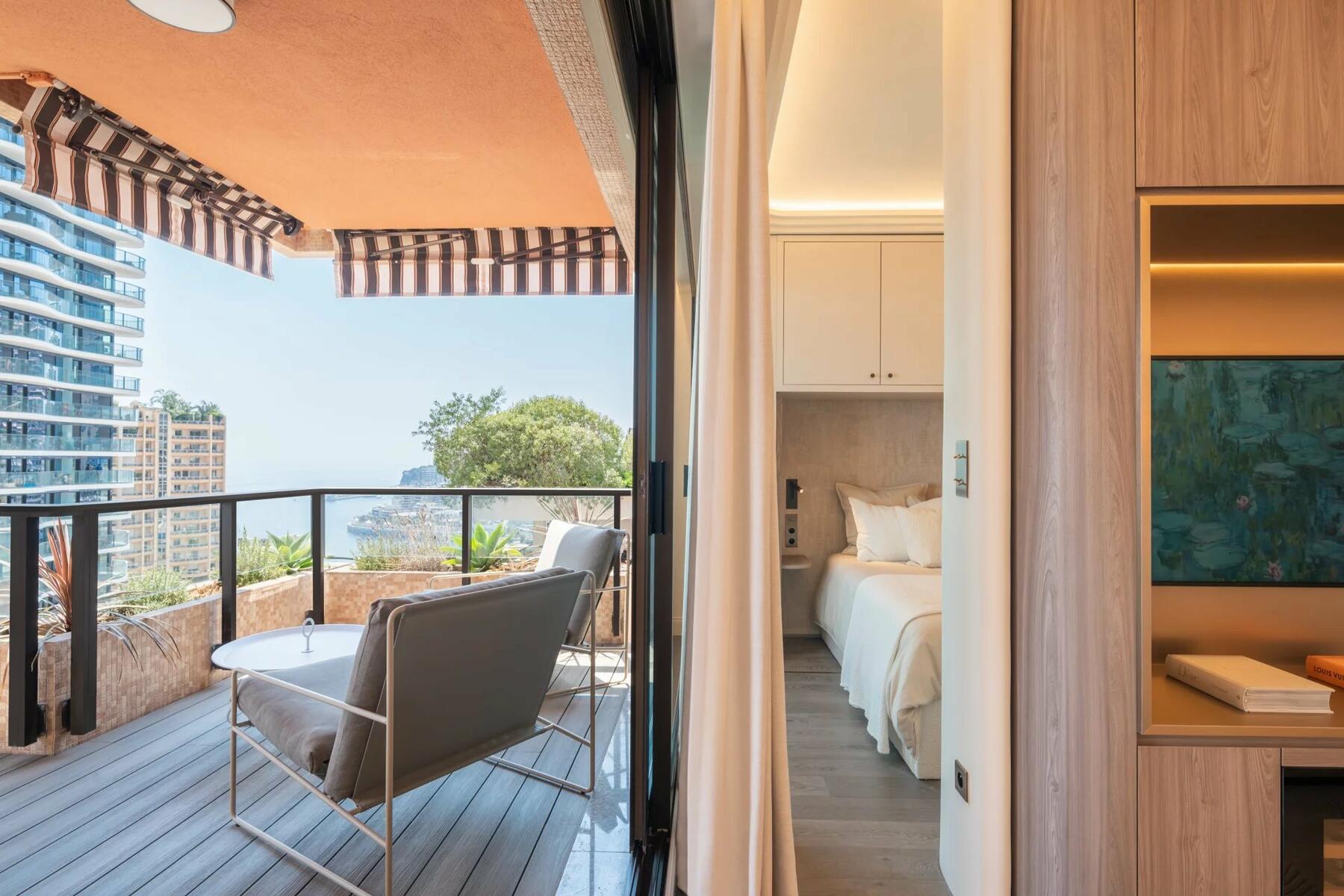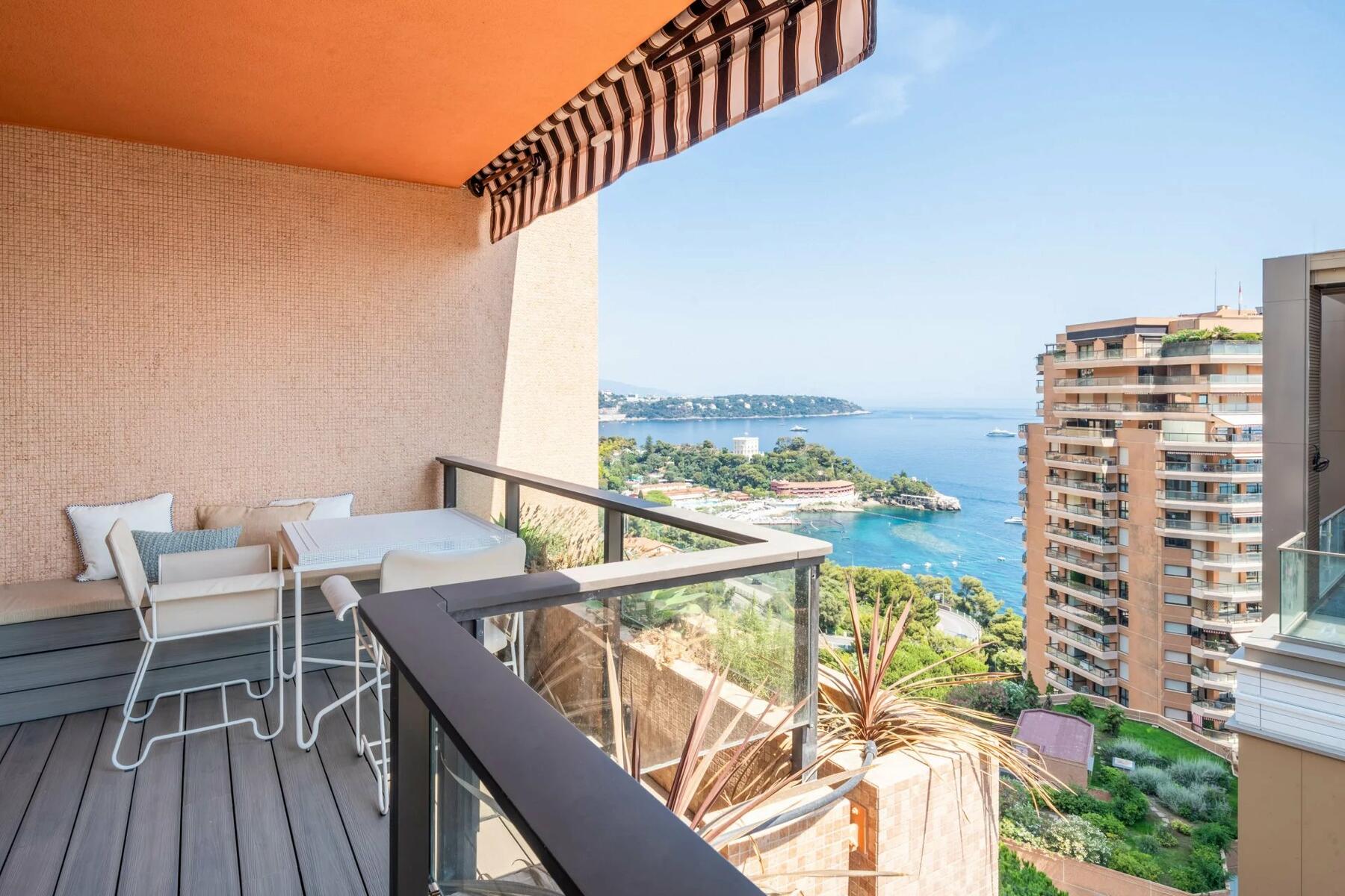 Situato a un piano alto con esposizione a sud-est, gode di una splendida vista sul mare della spiaggia di Monte Carlo.