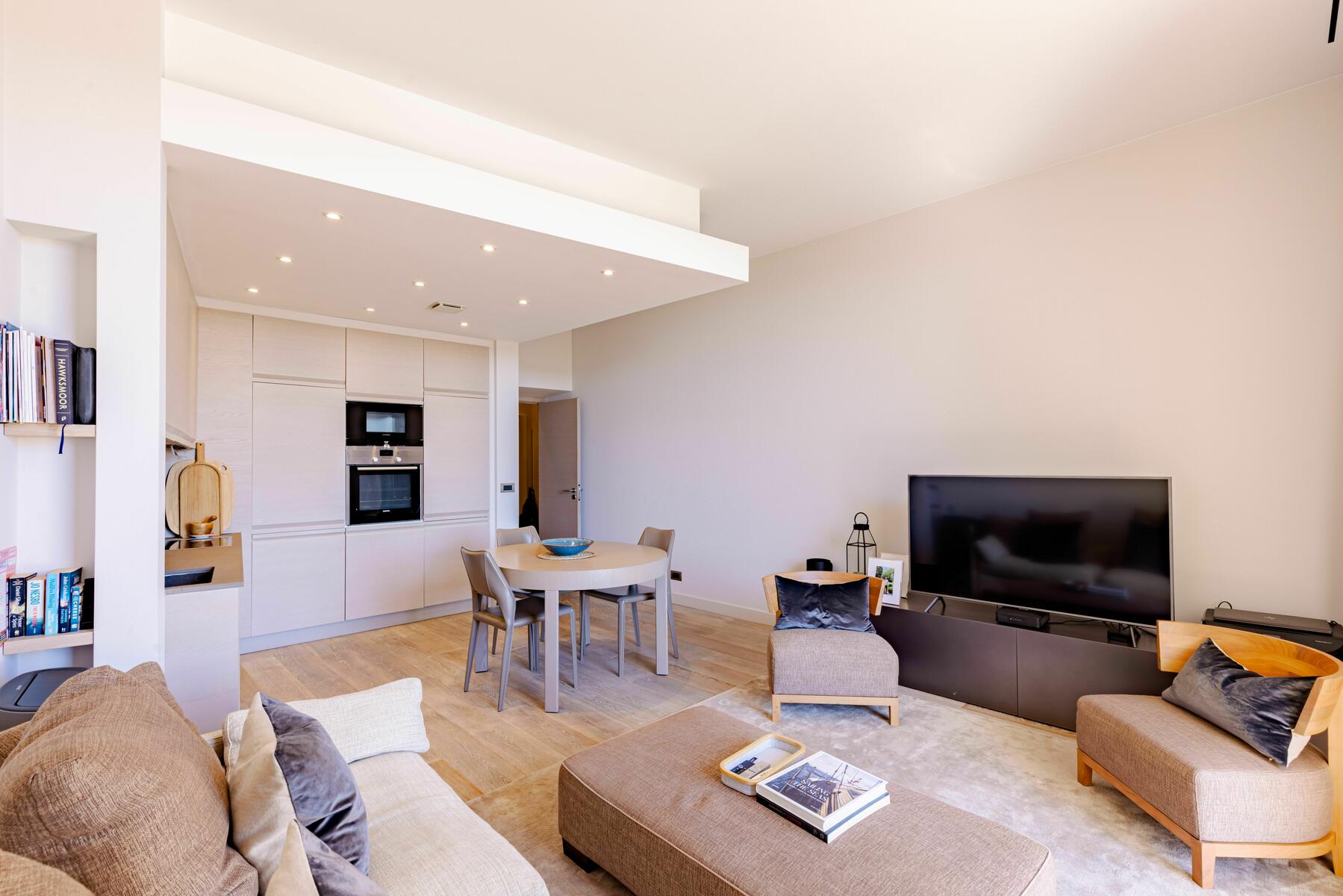 Questa proprietà eccezionale comprende un soggiorno luminoso con accesso diretto alla terrazza, una cucina completamente attrezzata con finiture di lusso e una spaziosa camera da letto con cabina armadio su misura. La ristrutturazione è stata eseguita con grande attenzione ai dettagli, creando uno spazio abitativo moderno e raffinato.