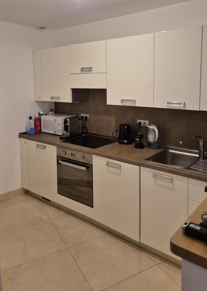 L'appartamento è così disposto: ingresso, soggiorno con cucina a vista, camera da letto, bagno completo, bagno per gli ospiti.