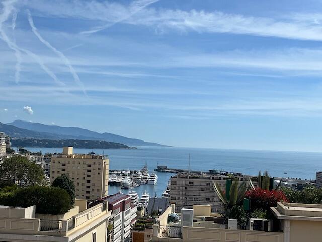 Una raffinata scala conduce al piano superiore, ultimo piano dell’edificio dove troverete una master bedroom con bagno en suite e una grande vetrata che si apre su un’ampia terrazza. Godetevi una vista spettacolare sul mare, sul Rocher e su Roquebrune. Una seconda camera luminosa, anch’essa dotata di bagno en suite, è attraversante, con una finestra che offre vista mare e una portafinestra che conduce a un piccolo balcone sul retro. I volumi delle camere sono particolarmente notevoli grazie a un’altezza del soffitto generosa, che offre una sensazione di spazio e luminosità.