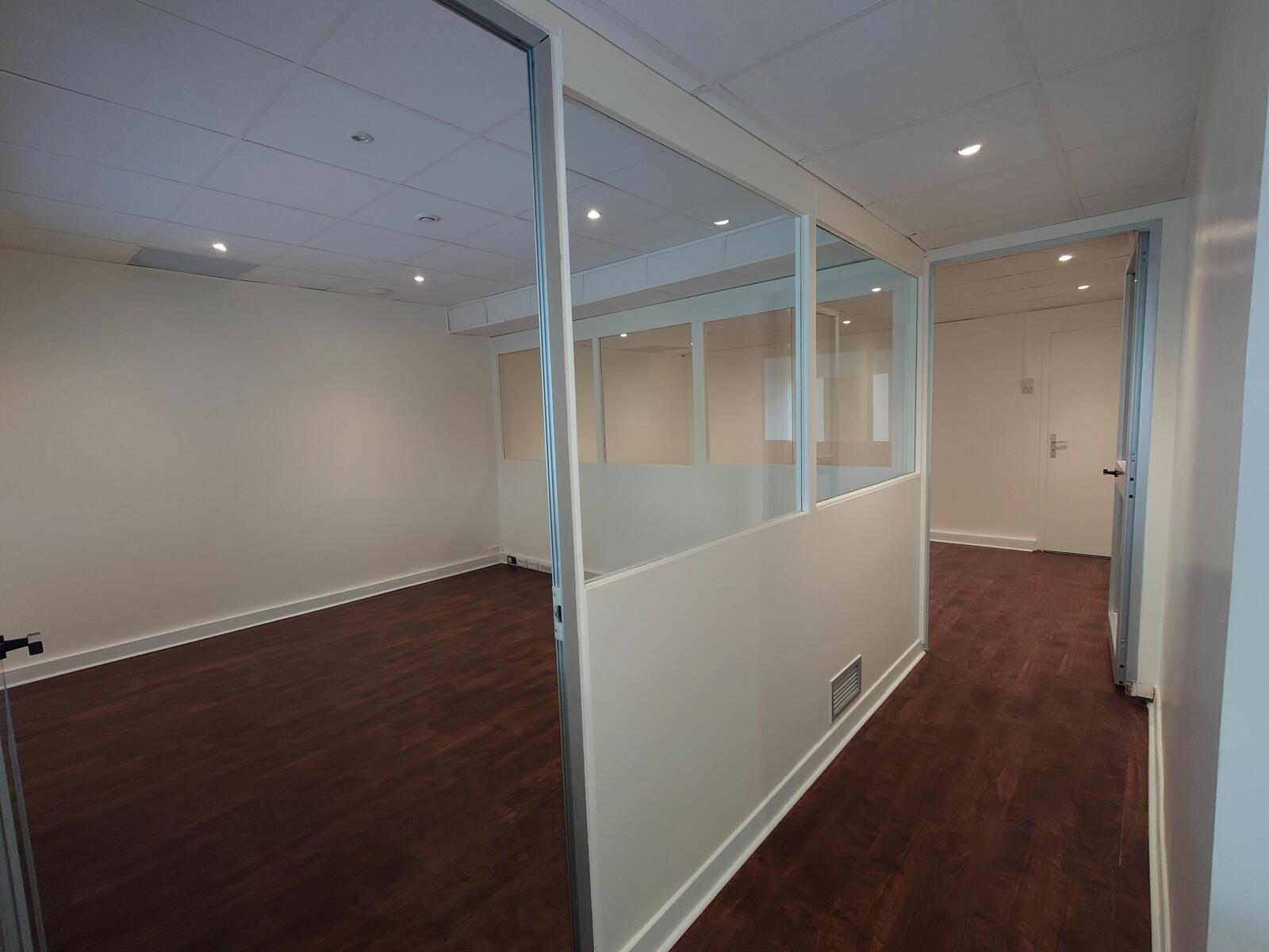 1 sala principale con 3 uffici divisi da finestre divise,