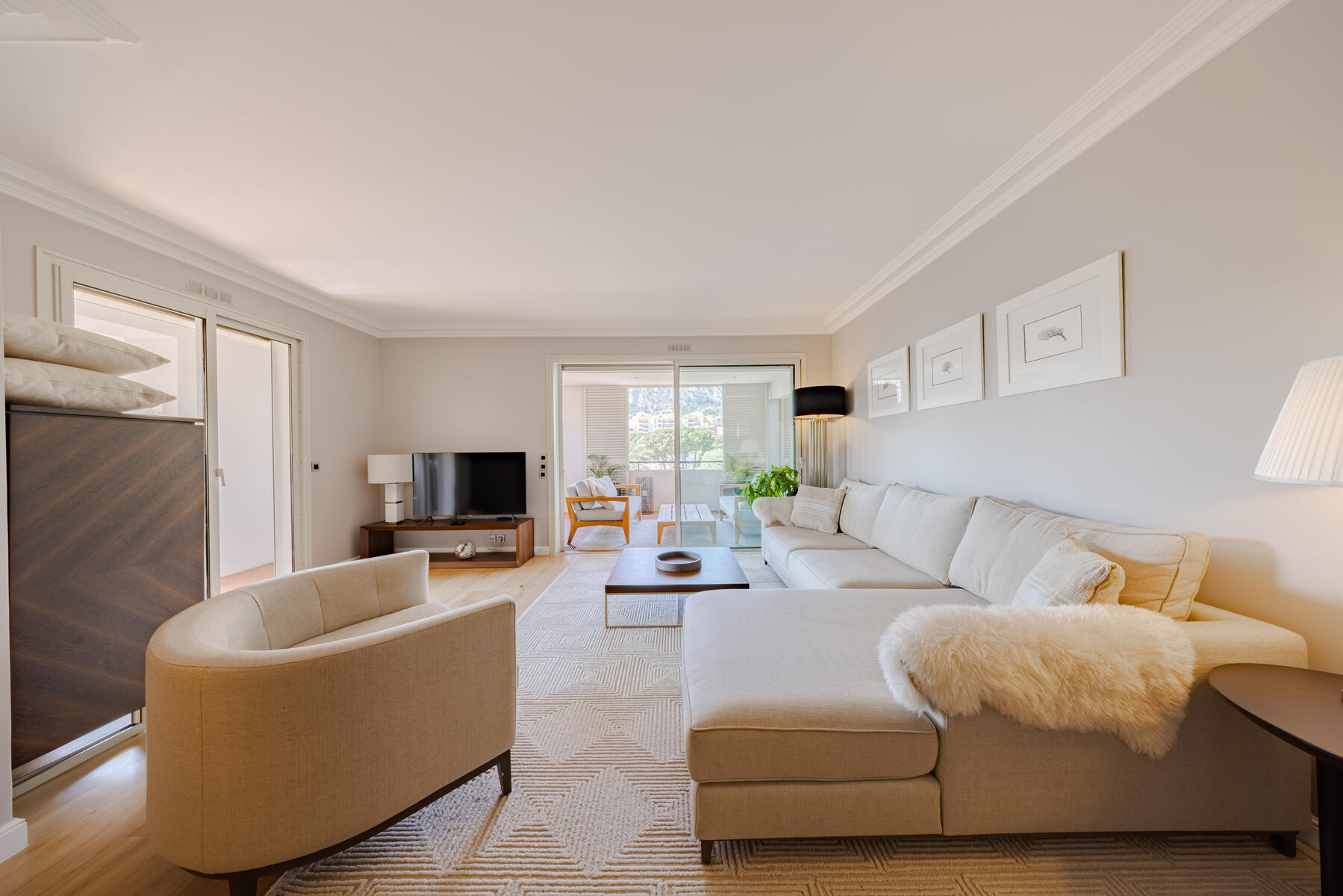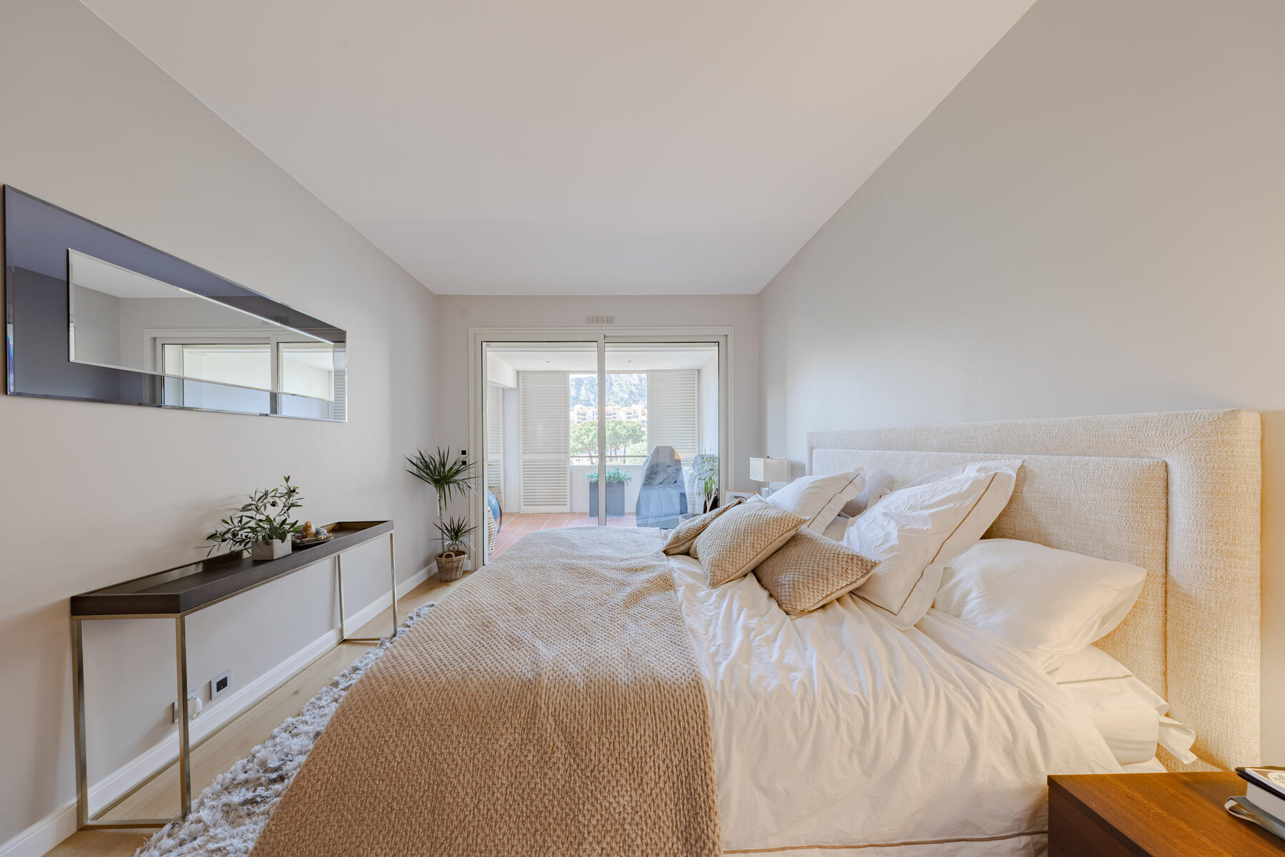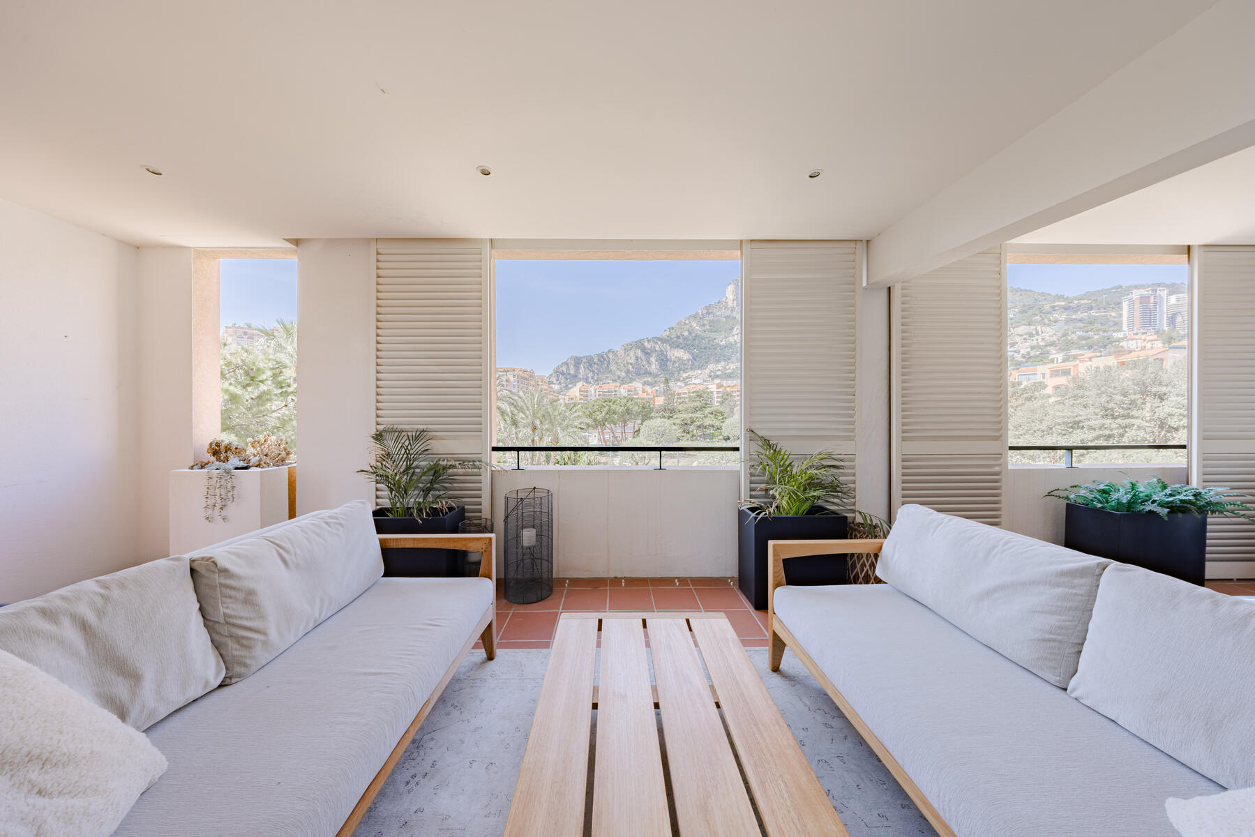 Le ampie terrazze sono perfette per momenti di relax o per ricevere all’aperto, con viste panoramiche sul Giardino delle Rose e sullo splendido paesaggio monegasco.