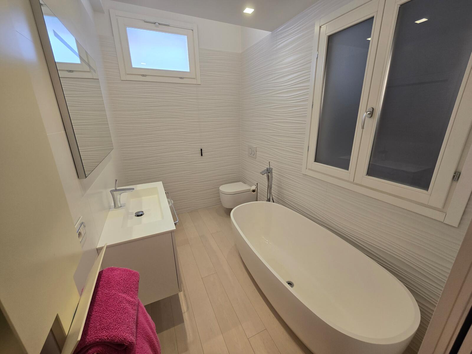 L'appartamento è composto da un ingresso, un bel soggiorno con cucina a vista, una grande camera da letto, una camera con bagno privato ; una doccia con WC.