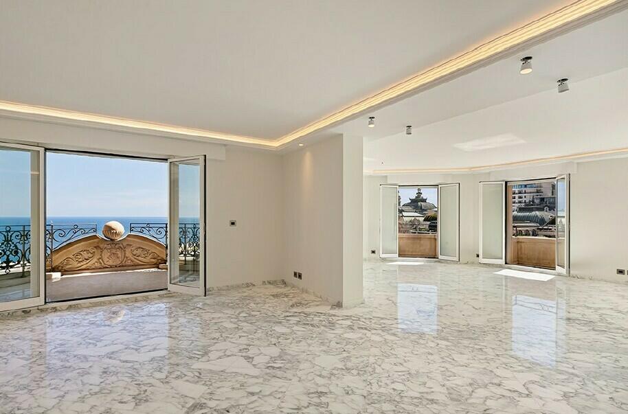 Con una superficie abitabile di 380 mq e 35 mq di terrazze, questo appartamento signorile di 6 vani occupa l’8° piano di una rinomata residenza. Grazie alla tripla esposizione, gli interni sono inondati di luce naturale e godono di una vista impareggiabile sul mare e sul Casinò.