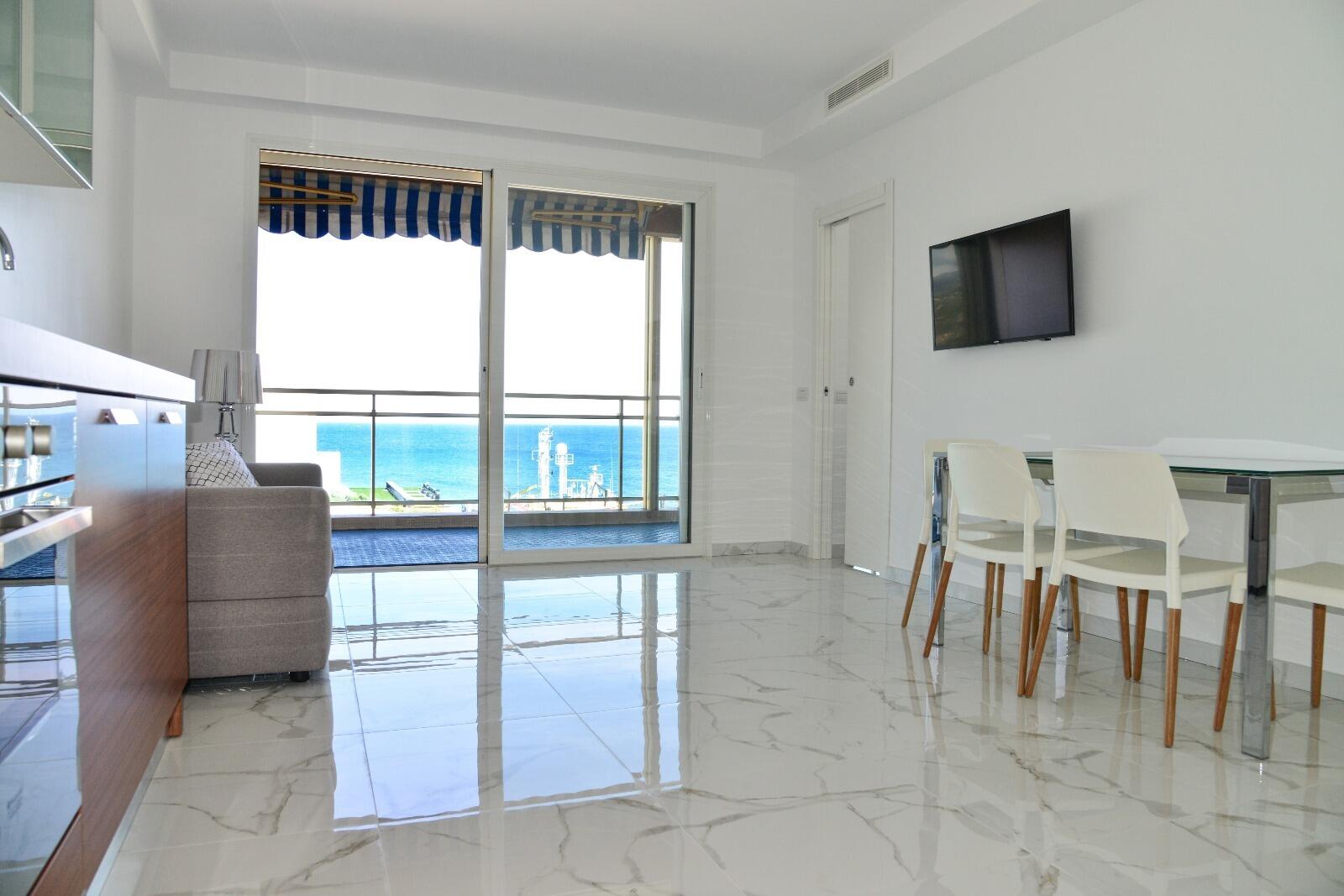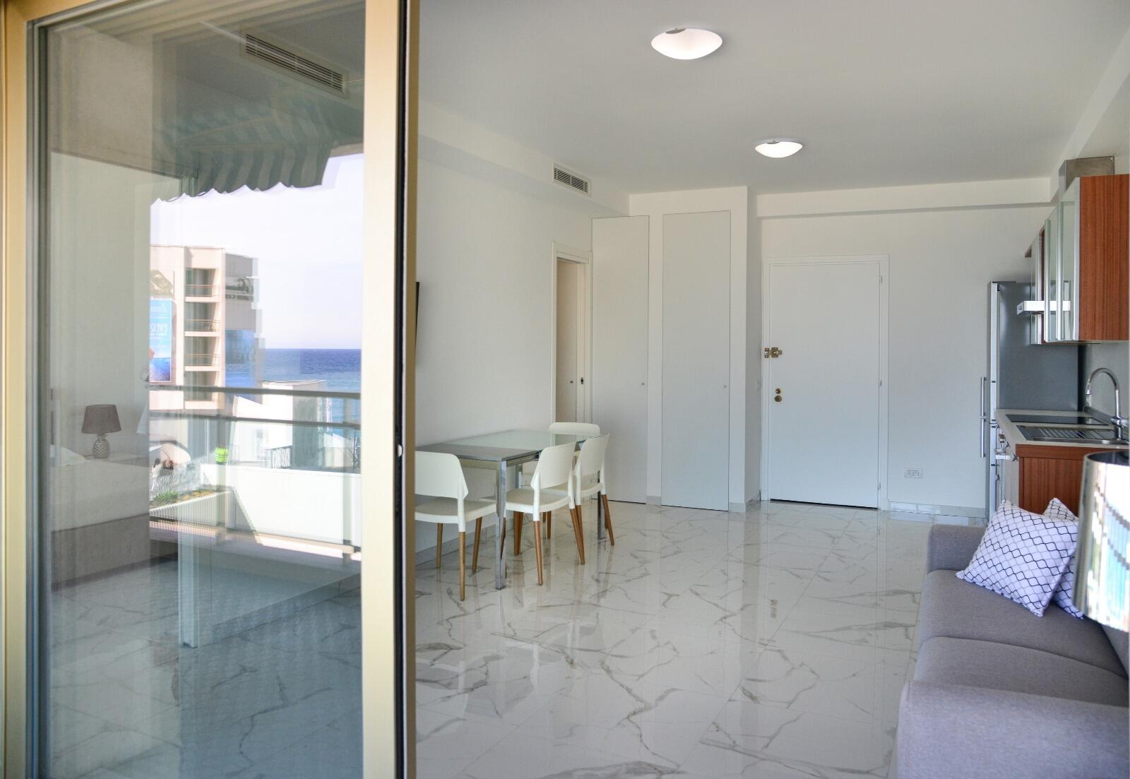 Grazioso appartamento di 2 locali completamente ristrutturato e arredato. Situato in un edificio di buon standing con portineria, nelle immediate vicinanze delle spiagge e dei negozi, è composto da ingresso, soggiorno, cucina attrezzata, ampia camera da letto con spogliatoio, bagno con doccia (cabina doccia).