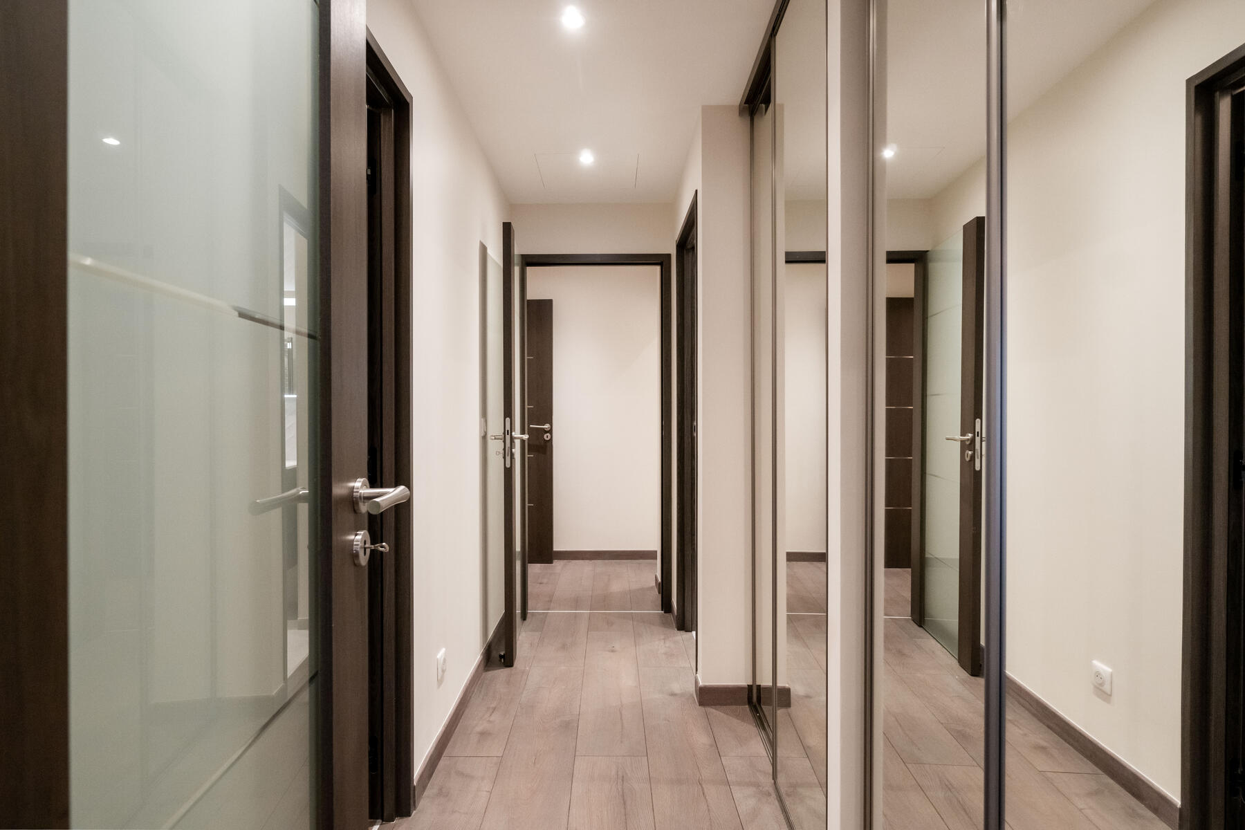 Si compone di un ingresso con armadi a muro, un soggiorno con accesso al balcone, una cucina a vista completamente attrezzata, tre camere da letto con cabine armadio annesse, tre bagni con doccia e una camera aggiuntiva con cabina armadio e bagno privato.