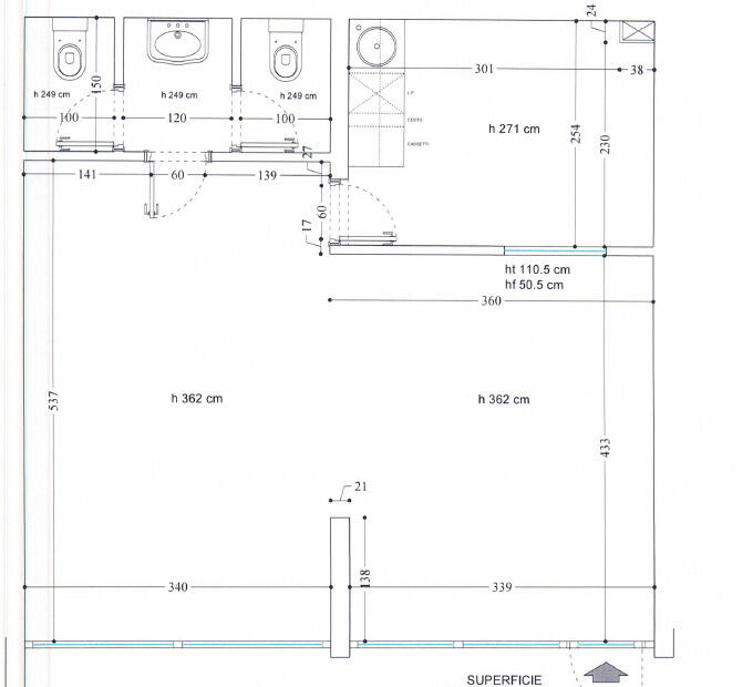 Composto da: Una grande sala principale, 1 sala riunioni, 2 servizi igienici.