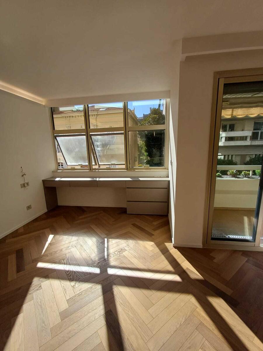 Questo appartamento completamente ristrutturato con materiali di pregio, è composto da un ingresso, due camere da letto di cui una padronale con spogliatoio, due bagni, un bagno per gli ospiti, un soggiorno, una cucina completamente attrezzata e una loggia.