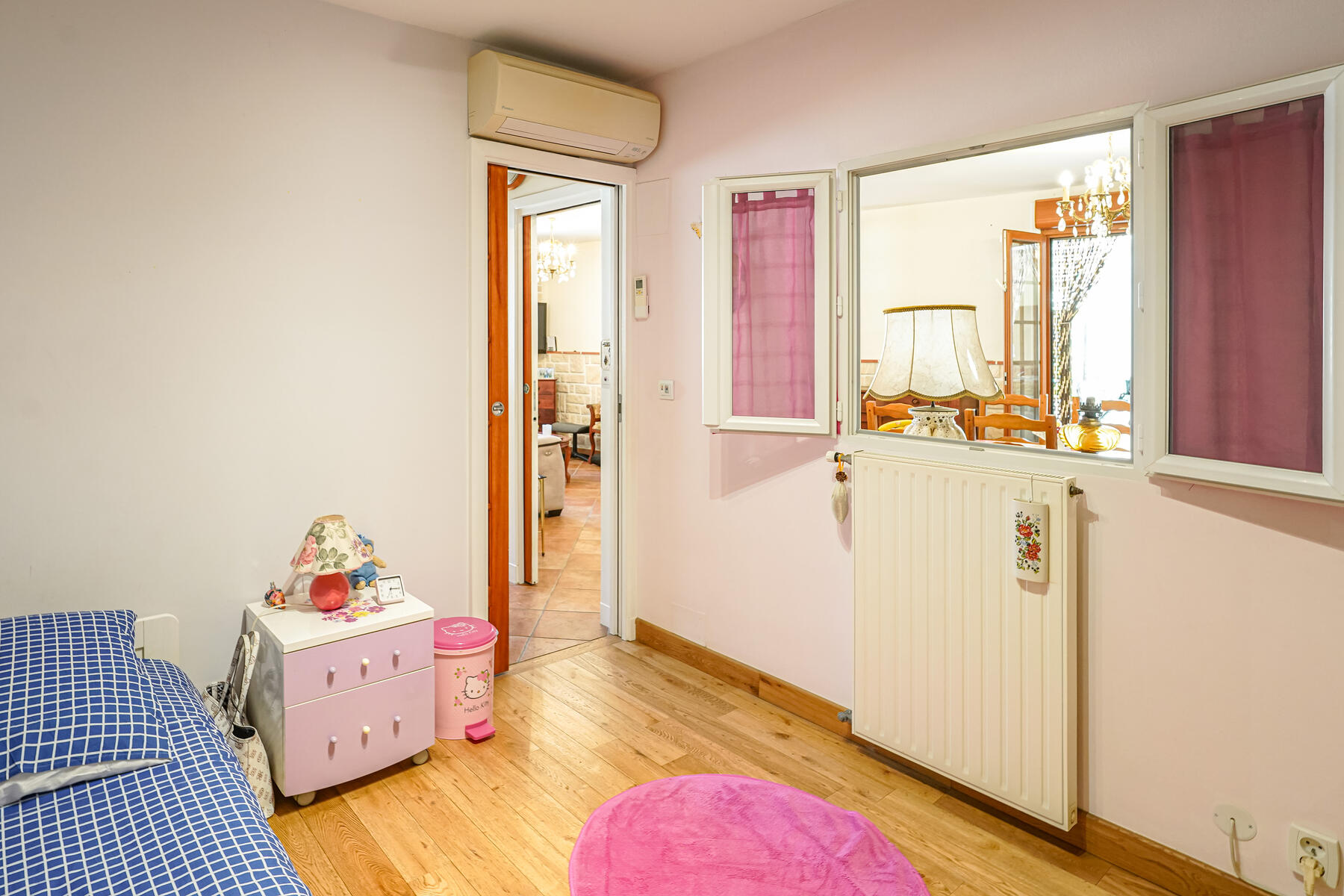 Entrambi gli appartamenti sono dotati di aria condizionata. La proprietà dispone anche di un parcheggio esterno e di un box che può ospitare fino a quattro veicoli, oltre a una cantina.