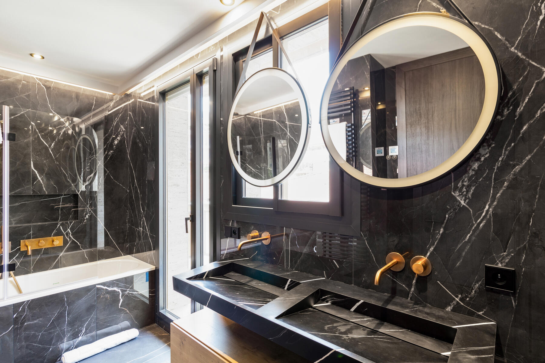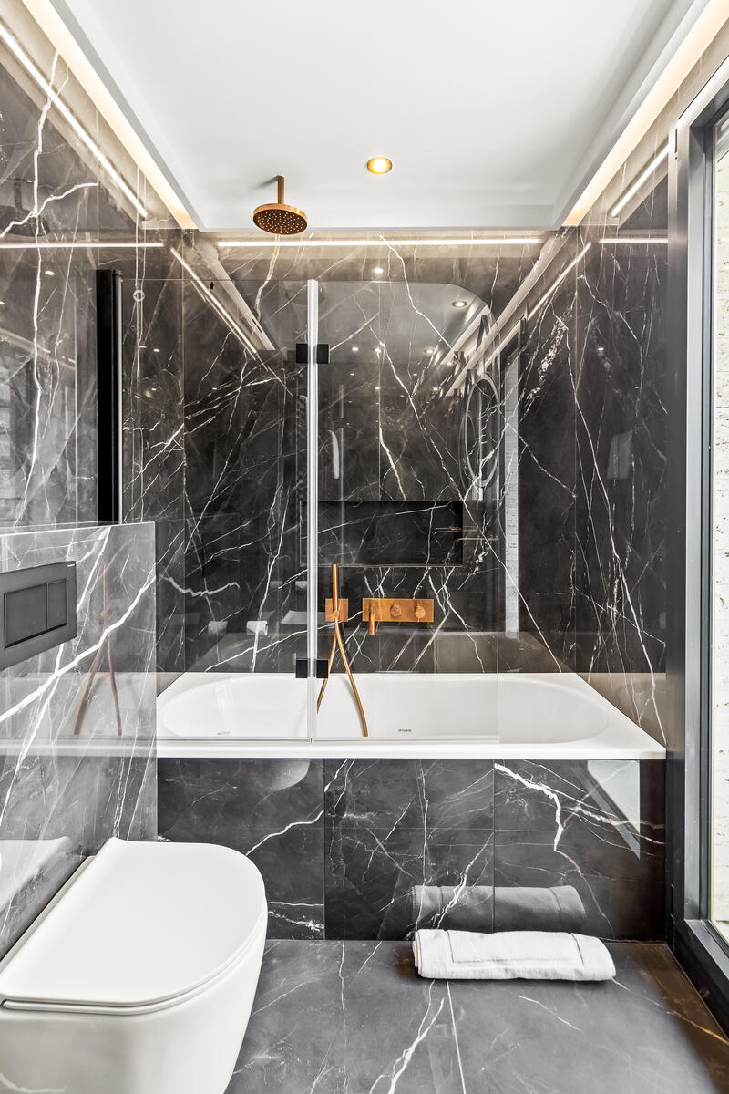 L’immobile si compone di un ingresso, un ampio soggiorno con zona pranzo e cucina a vista completamente attrezzata, due camere da letto con bagno en suite (con doccia e vasca), oltre a due servizi per gli ospiti. Una lavanderia, una cabina armadio e diversi spazi contenitivi completano questa proprietà ben organizzata e con doppia esposizione.