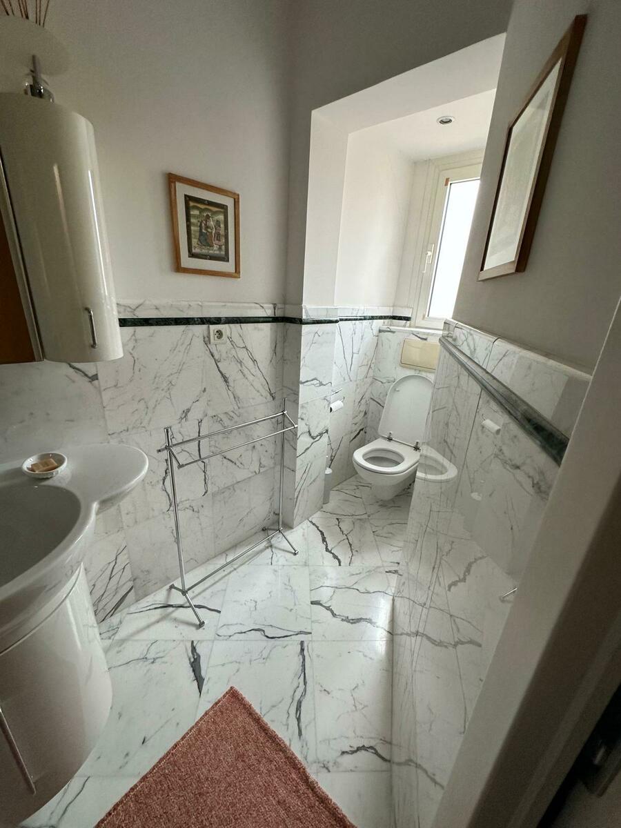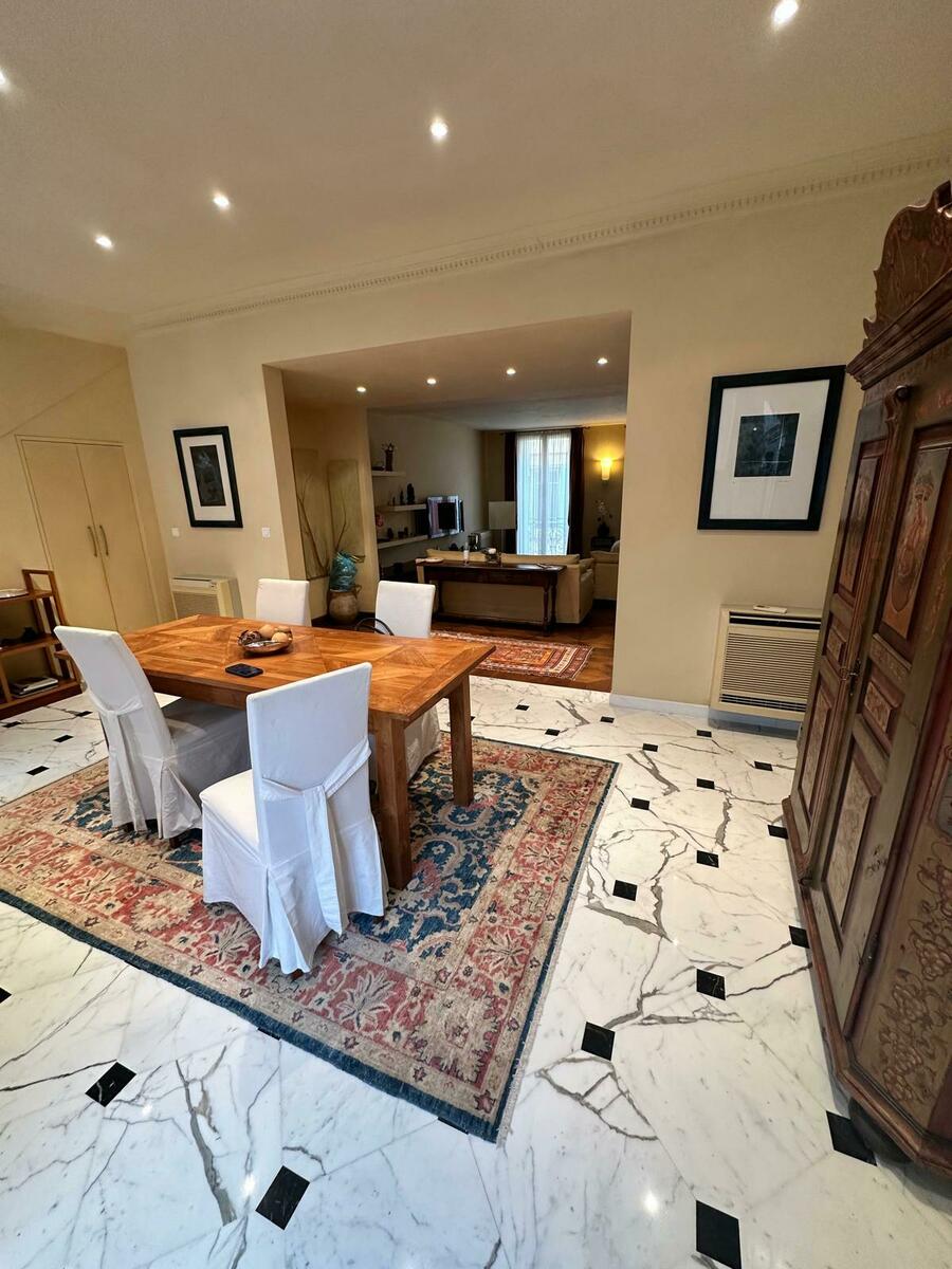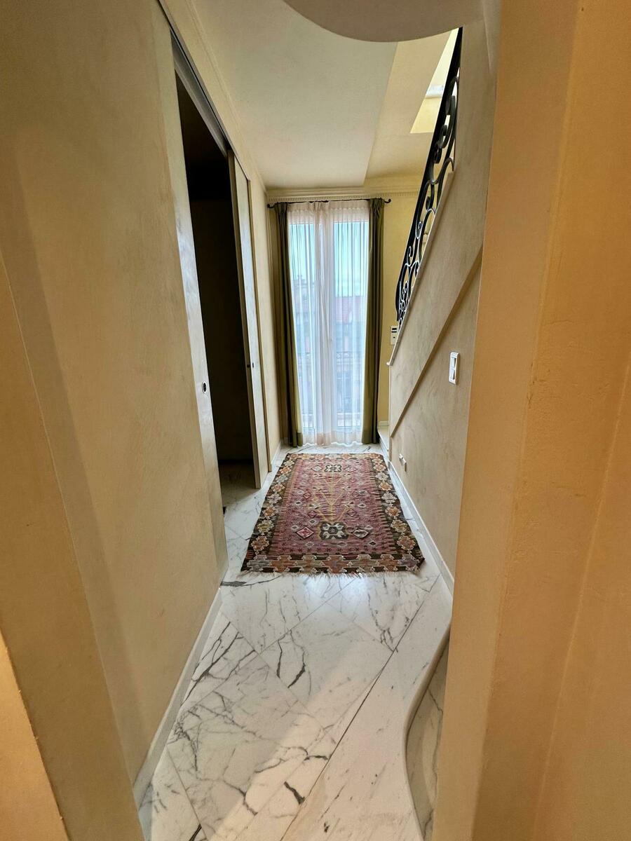 Distribuito su tre livelli, questo appartamento di quattro vani è in perfette condizioni e decorato in stile “Fiorentino”, con materiali di alta qualità: pavimenti in legno pregiato, doppi vetri e aria condizionata. L’immobile gode di una splendida vista aperta sui tetti del Roccioso, sul Palazzo, sulla città e con un leggero scorcio mare.