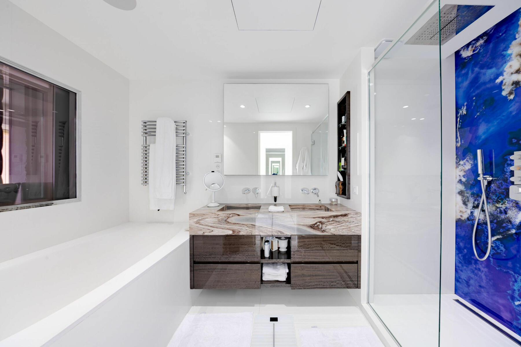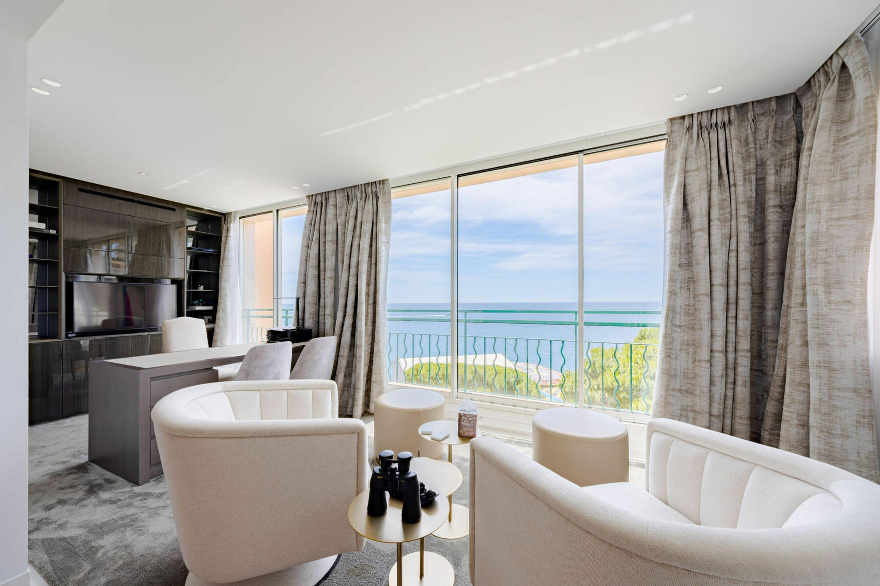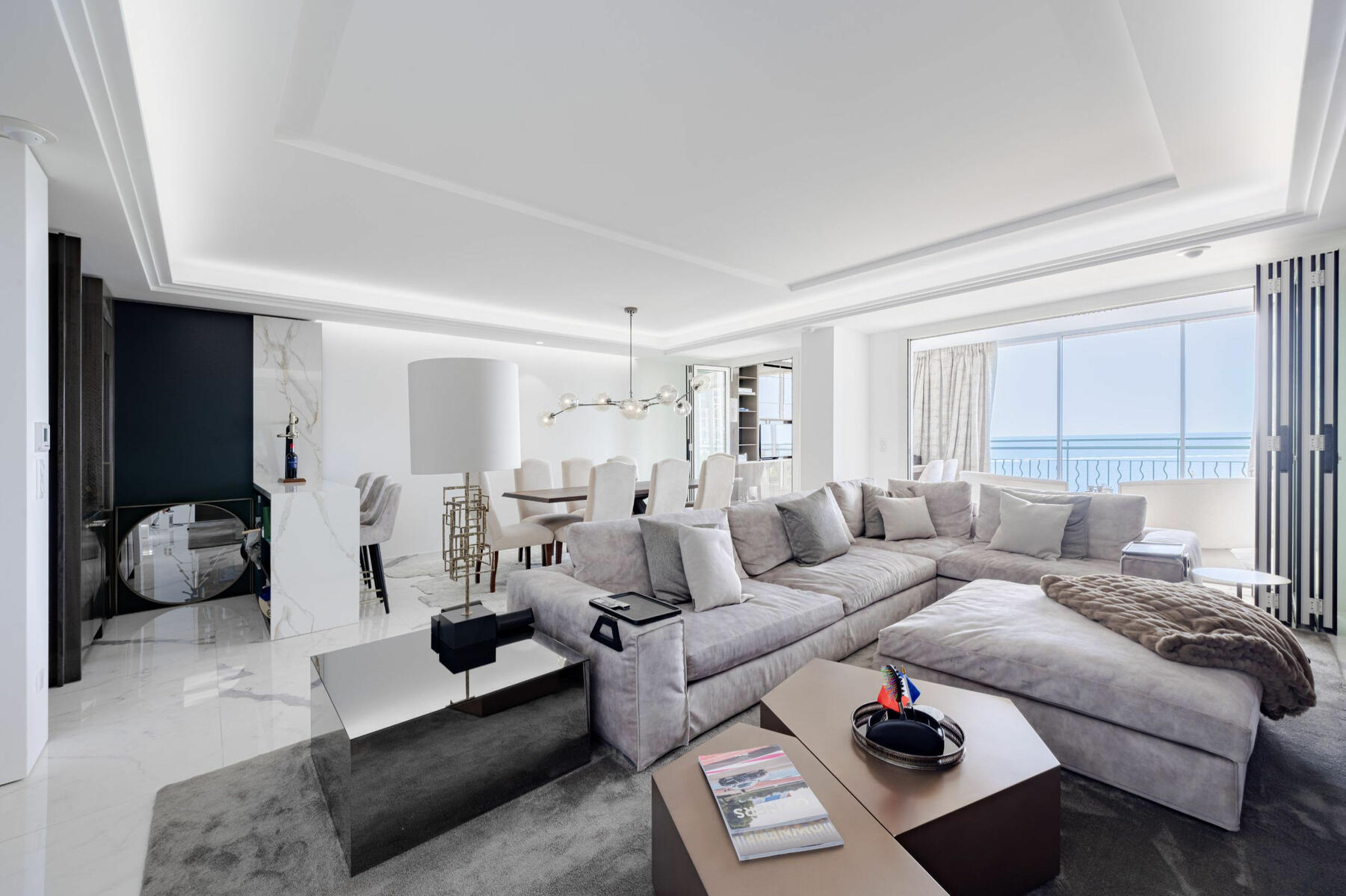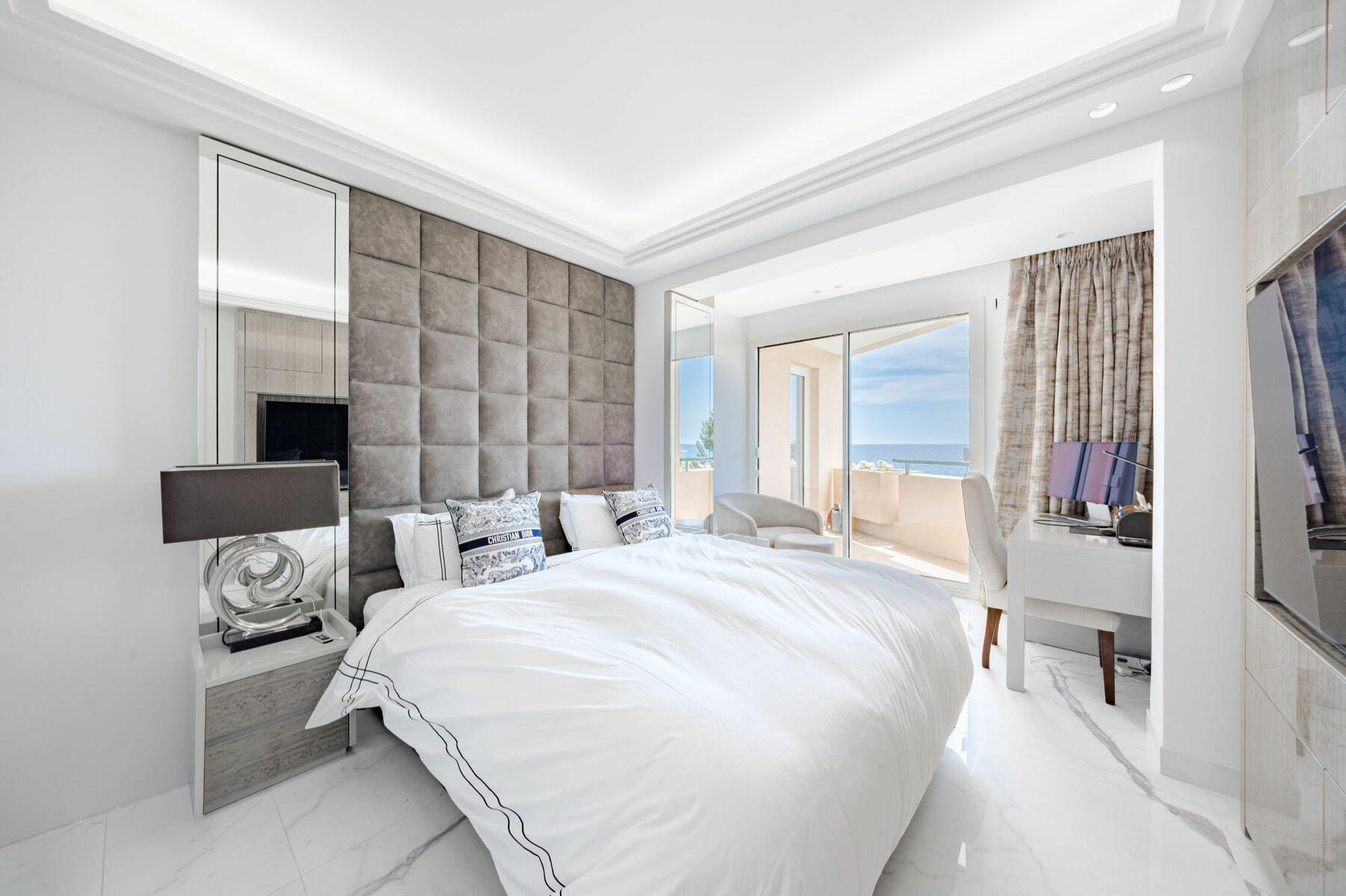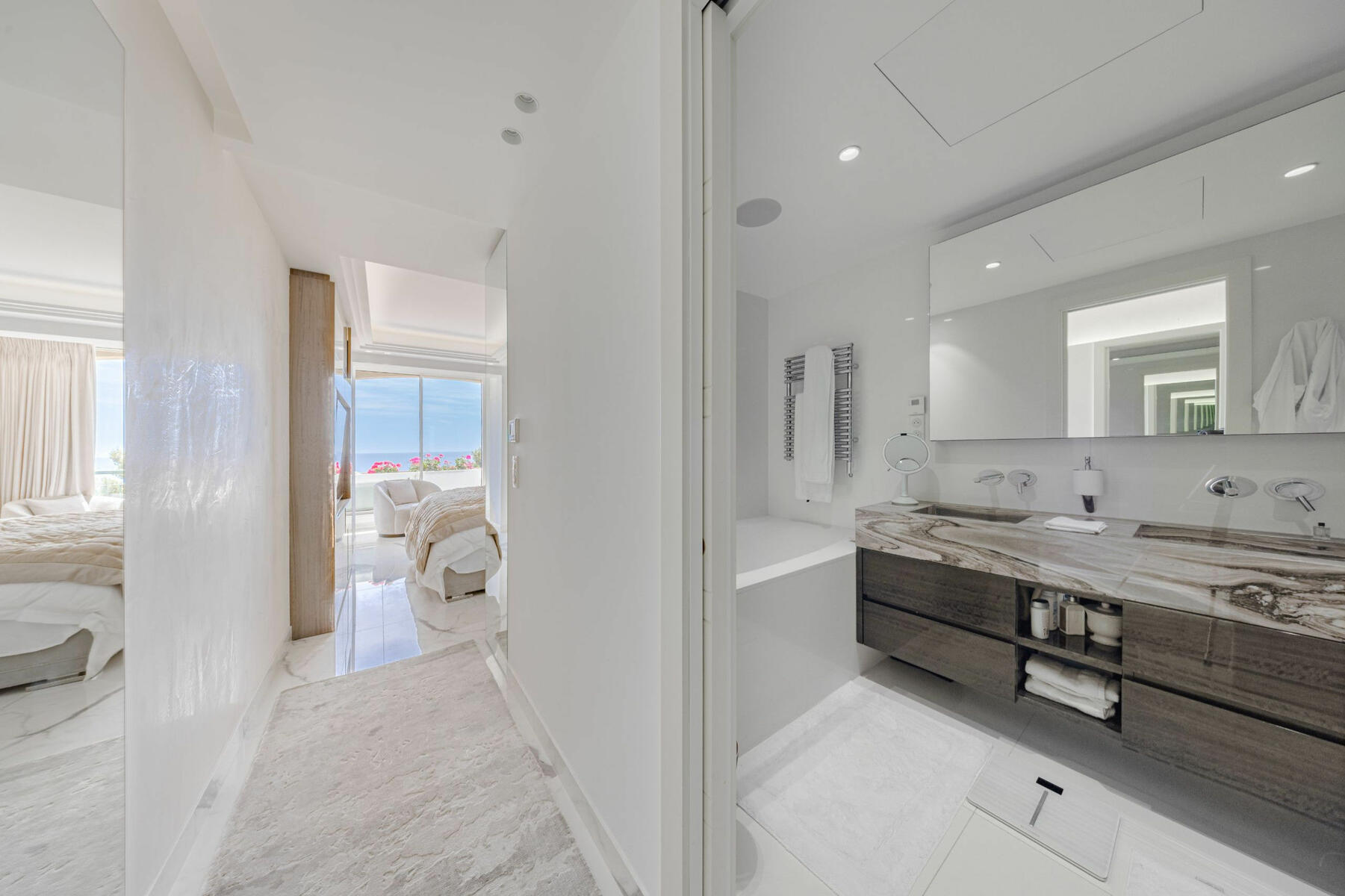 Lussuoso appartamento di 4 locali completamente ristrutturato, che unisce materiali di pregio e modernità, con una vista mozzafiato sul Mar Mediterraneo e sui giardini rigogliosi. Questo appartamento, inondato di luce naturale, offre ampi spazi, doppi vetri tripli dal pavimento al soffitto e terrazze disposte in modo armonioso. Dispone di un soggiorno con zona pranzo e un angolo bar elegante; la grande cucina su misura è dotata di elettrodomestici professionali, mentre ogni camera gode di una meravigliosa vista sul mare e del proprio bagno privato. Un sistema di aria condizionata indipendente e un riscaldamento a pavimento garantiscono il massimo comfort durante tutto l'anno. I residenti hanno accesso a un servizio di portineria, a una piscina privata e a una posizione eccellente vicino al porto. L'immobile include due posti auto sotterranei.
