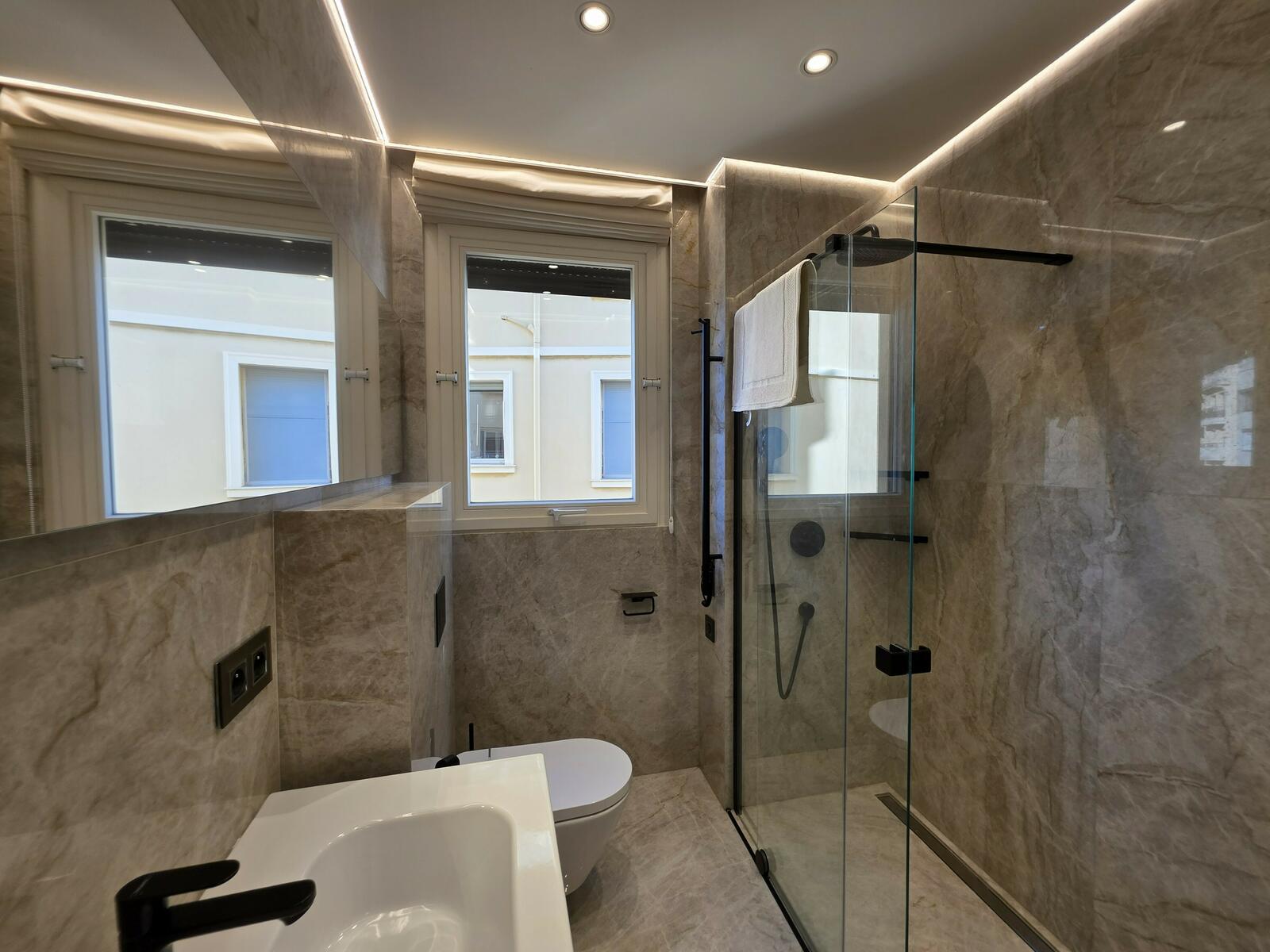 Questo superbo appartamento di 3 stanze è stato completamente ristrutturato con finiture di alto livello e arredato con mobili su misura, offrendo un ambiente abitativo raffinato e contemporaneo.