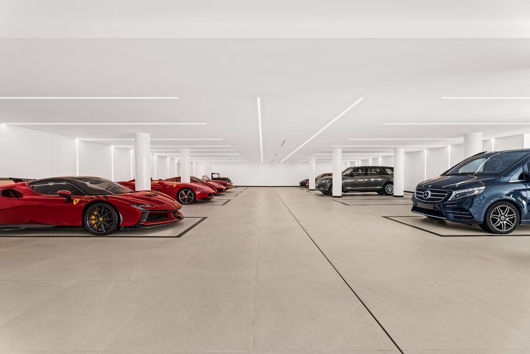 Sono disponibili un garage appositamente attrezzato con 12 posti e sistema di climatizzazione per veicoli prestigiosi, oltre a 30 posti auto aggiuntivi.