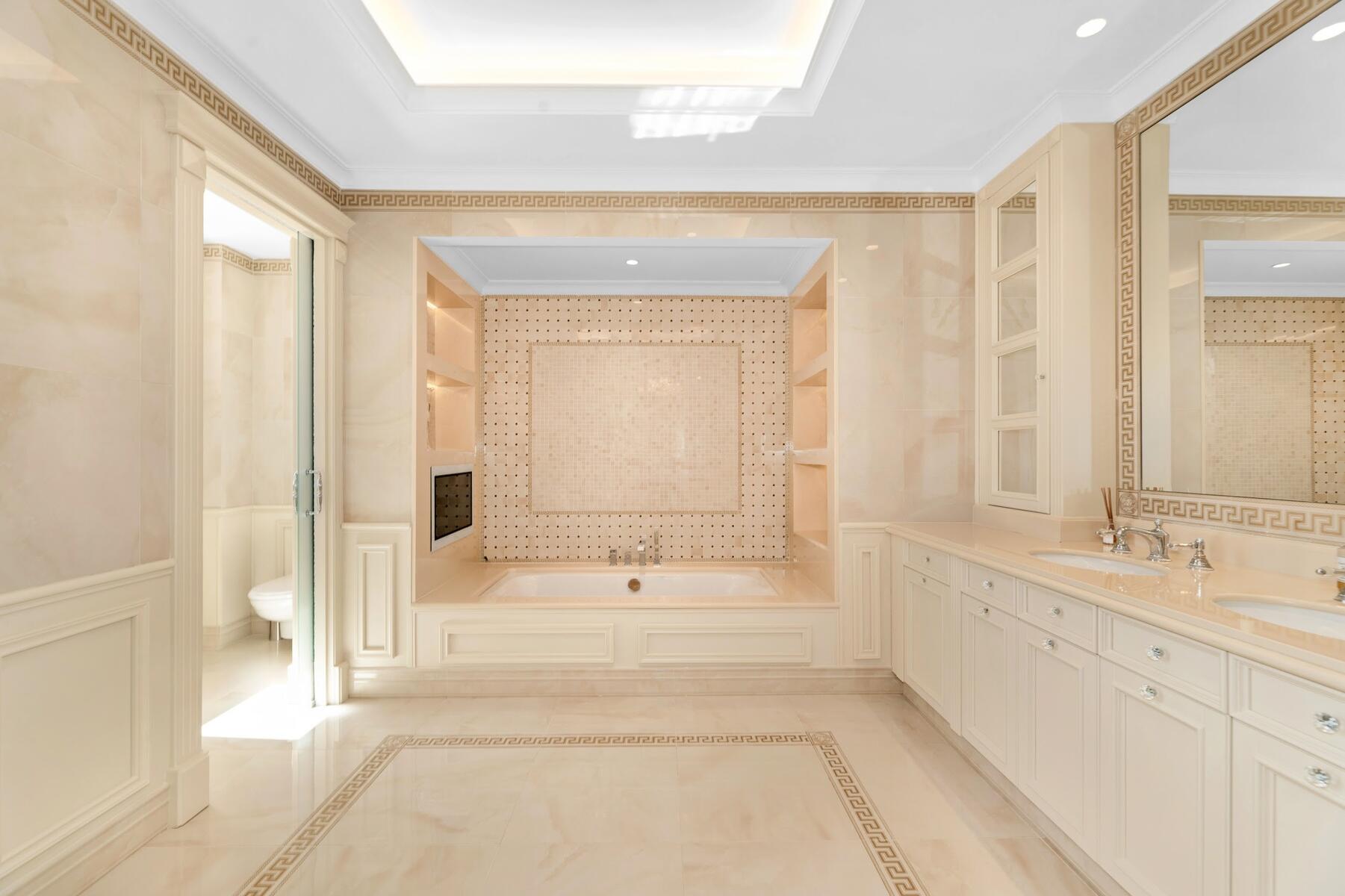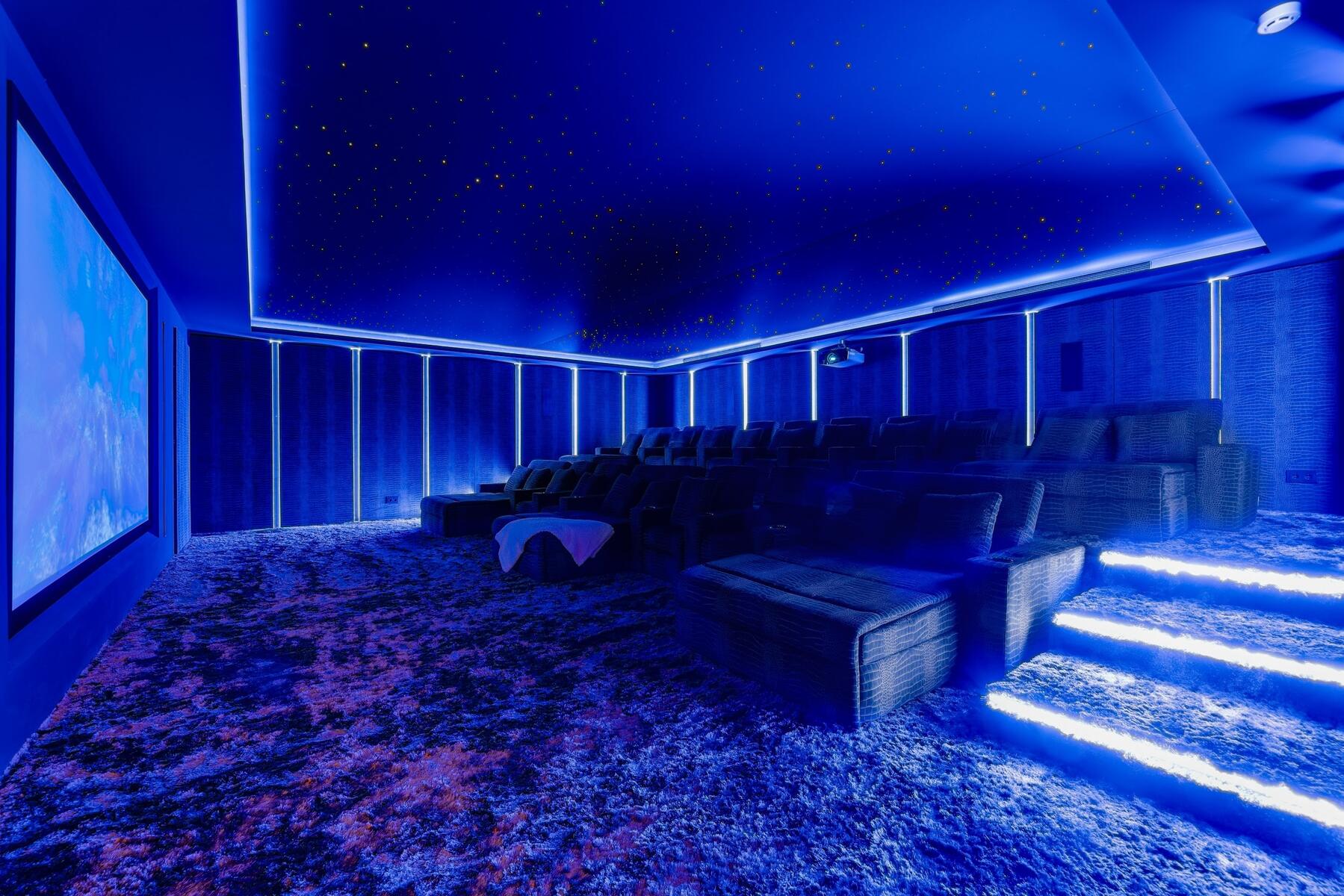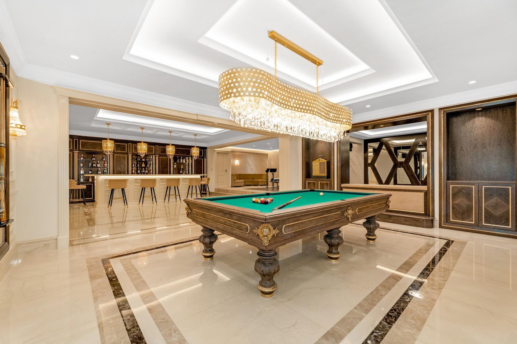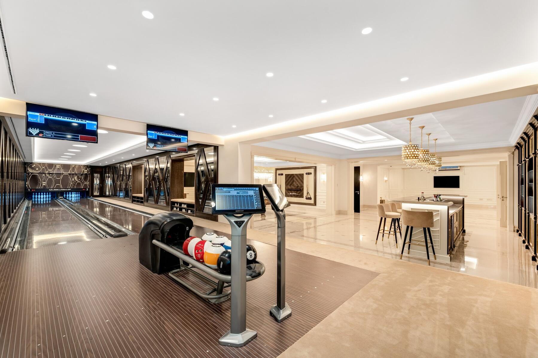 salone di parrucchiere e massaggi, oltre a una palestra. Un cinema privato, una sala biliardo con bar, una pista da bowling e due cantine per vini completano questo spazioso spazio.
