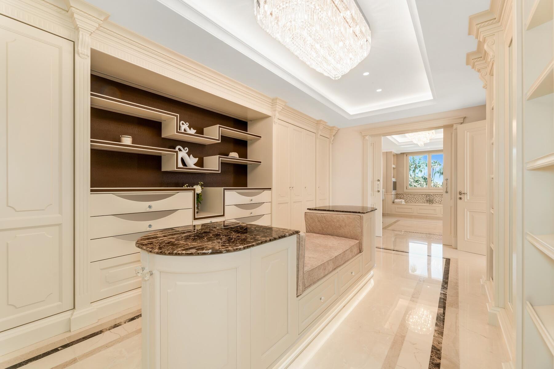 La villa offre 13 camere da letto con bagni privati e camerini, la maggior parte dei quali con vista panoramica sul mare.