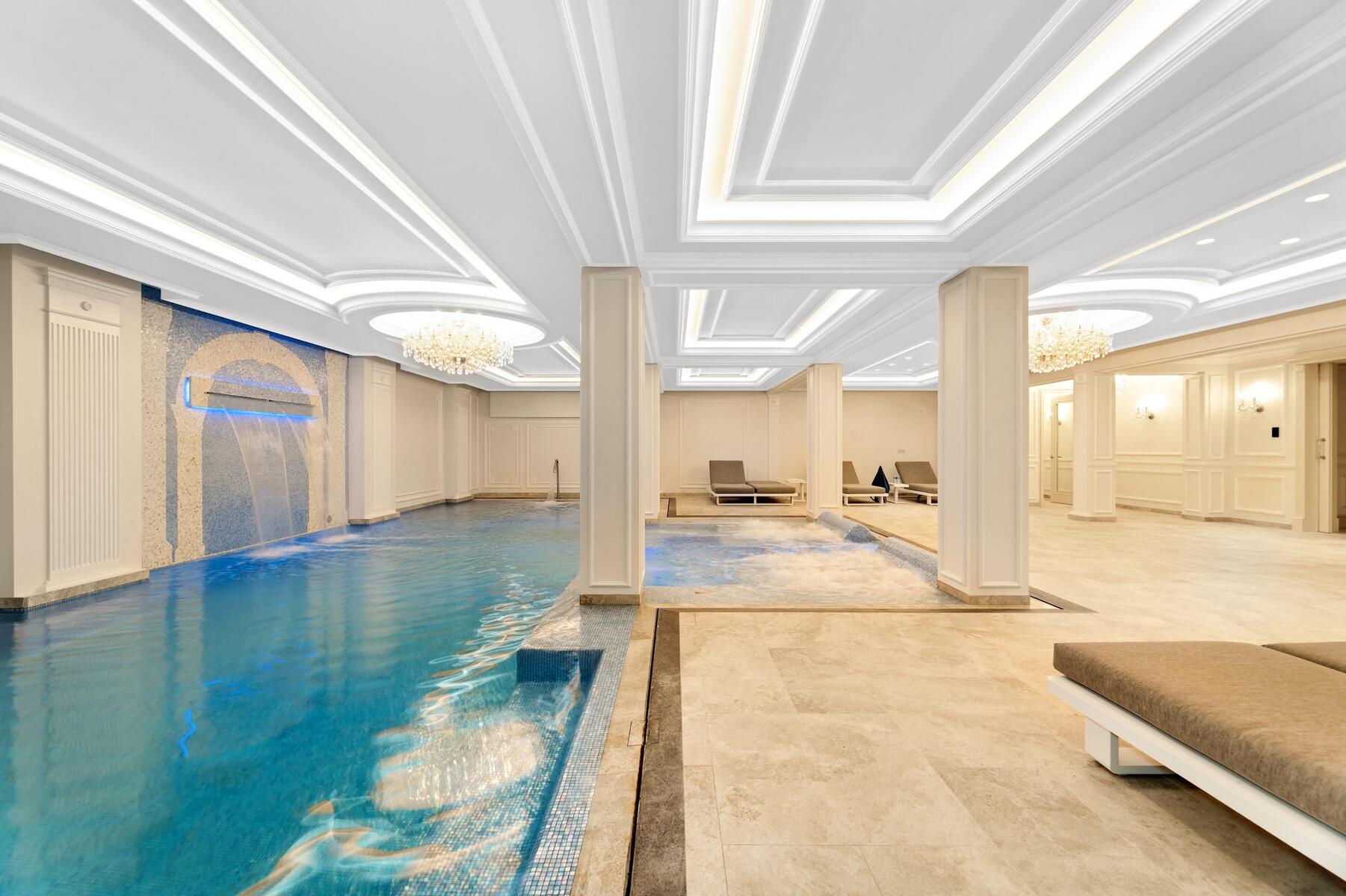 Il piano inferiore della villa è dedicato al relax e all'intrattenimento, con una SPA a 5 stelle , una piscina coperta riscaldata, hammam, sauna,
