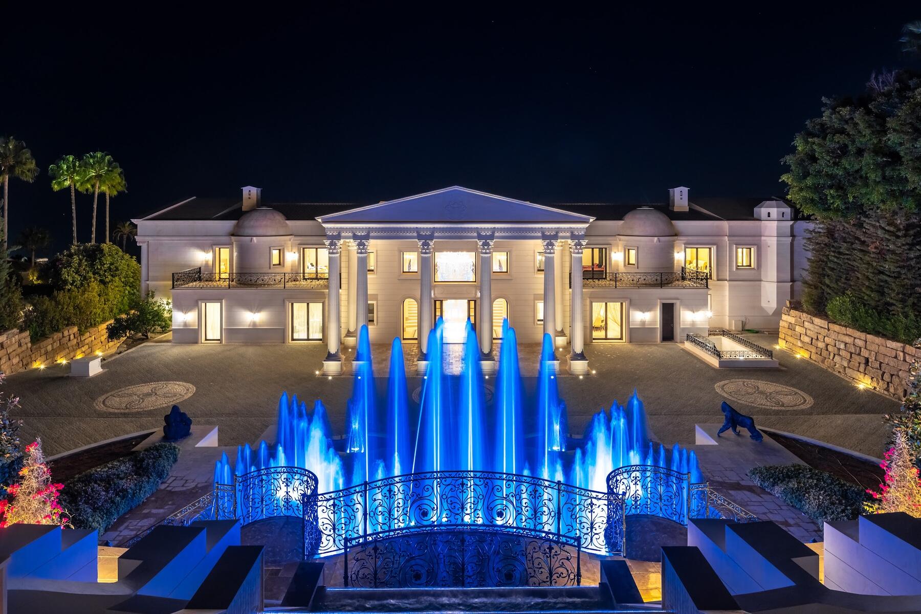 Su un terreno di 14.000 m² affacciato sul mare, questa casa offre 5.500 m² di spazio abitativo su 3 livelli e una spettacolare fontana con effetti luminosi.