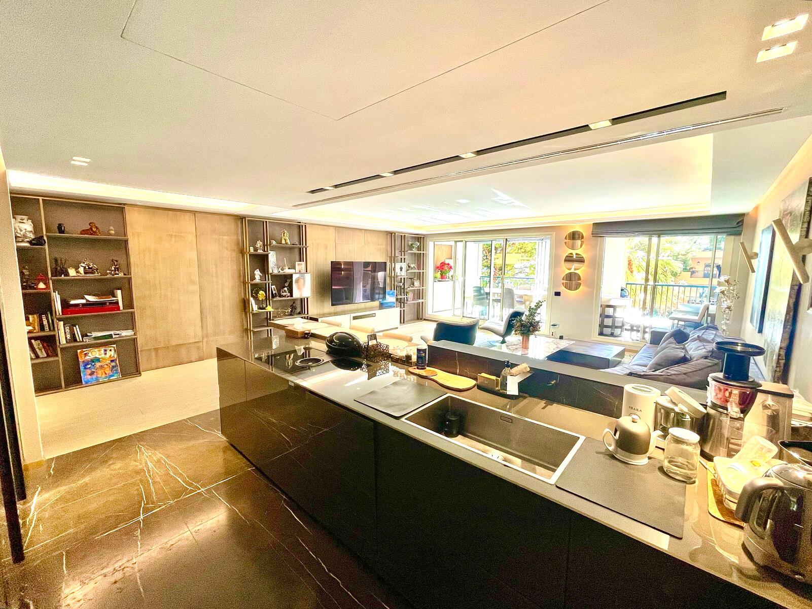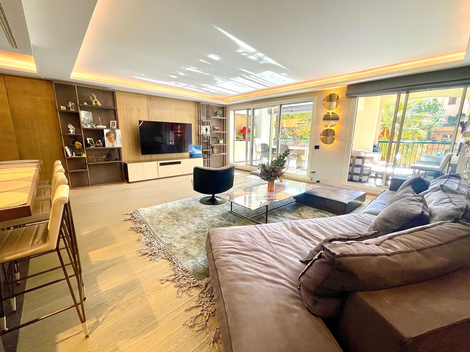 L'appartamento è esposto a sud e gode di una bella luce e dell'aria fresca del mare. L'intera proprietà è stata completamente e splendidamente ristrutturata in stile elegante, contemporaneo e di molto buon gusto. Nessun dettaglio è stato trascurato e ogni parte di questa splendida casa è stata realizzata con i materiali più pregiati, come i rari marmi e i pavimenti in legno naturale. L'interno è contemporaneo, con camere spaziose e splendide terrazze chiuse. Completa la proprietà un ampio ingresso che conduce ad un soggiorno con cucina a vista completamente attrezzata. La camera da letto principale è spaziosa e comprende un piccolo ufficio con vista sui giardini di palme e sul mare. Ci sono 2 ulteriori camere da letto con bagno privato, tutte con ampio ripostiglio a muro e un ufficio/4a camera da letto con una grande cabina armadio. Tutte le camere sono arredate con gusto, armadi e armadi su misura rivestiti in pelle e altre finiture su misura. La proprietà comprende anche una lavanderia ed è completamente climatizzata.