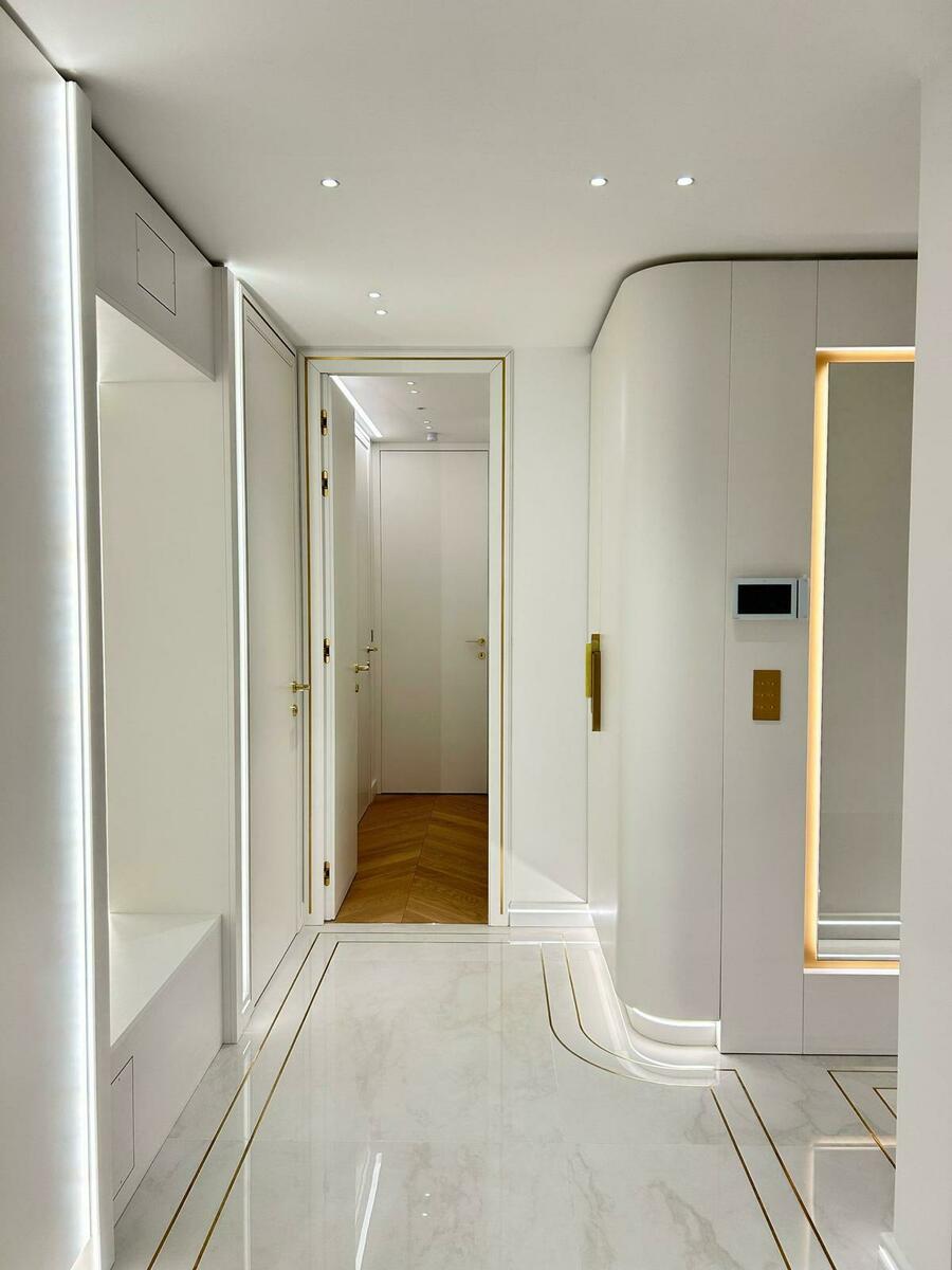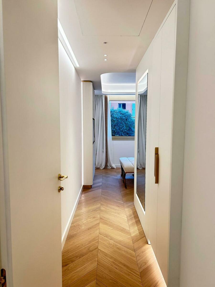 La zona notte comprende una splendida suite padronale con cabina armadio e bagno completo, oltre a due camere da letto con bagno e spazi di contenimento, garantendo comfort e privacy.