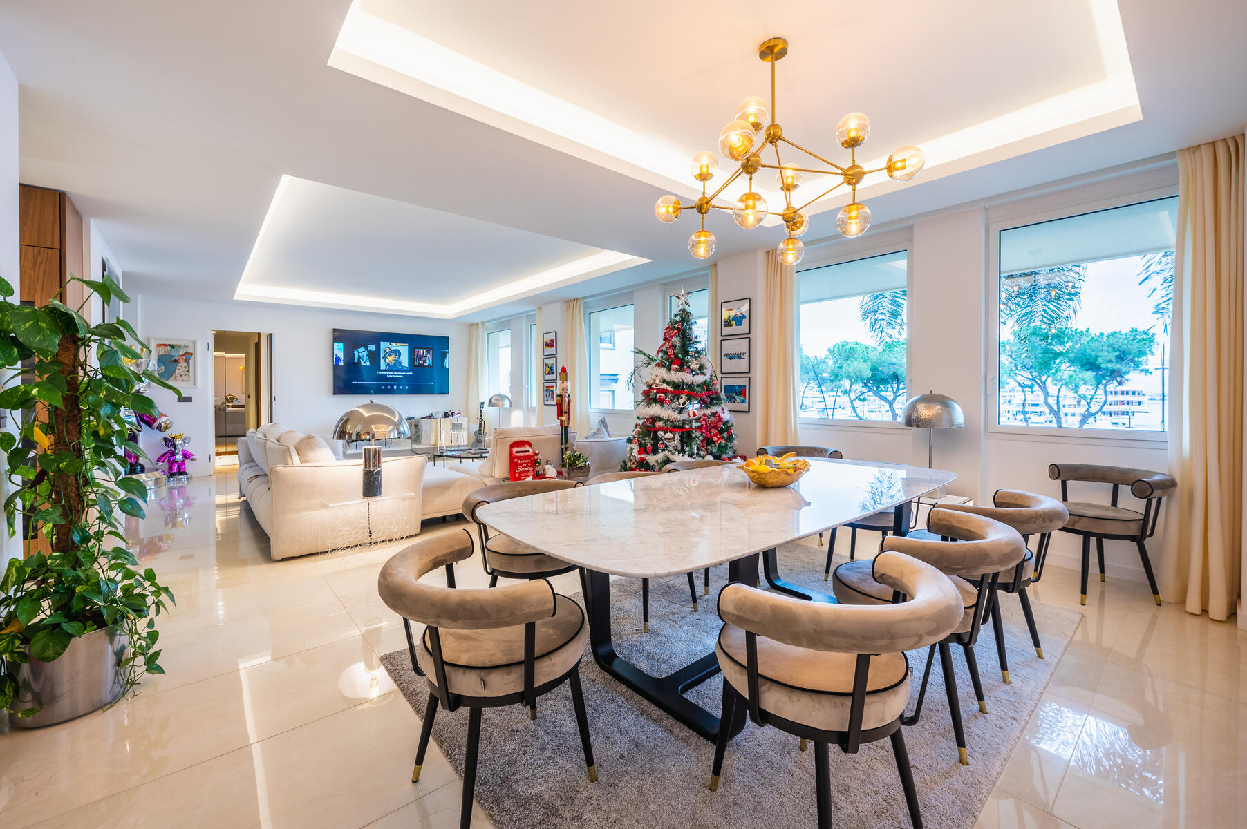 Situato su Port Hercule, in una palazzina con portineria, magnifico appartamento completamente ristrutturato con materiali di pregio, composto da ingresso, bagno per gli ospiti, soggiorno, sala da pranzo, magnifica cucina completamente attrezzata, lavanderia, camera matrimoniale con spogliatoio e bagno completo, altre 3 camere da letto con armadio, una con bagno completo, bagno con doccia, WC separato, parte ufficio composta da un grande ufficio con sala riunioni, 2° ufficio, Bagno con doccia, bagno, porta di servizio, aria condizionata.