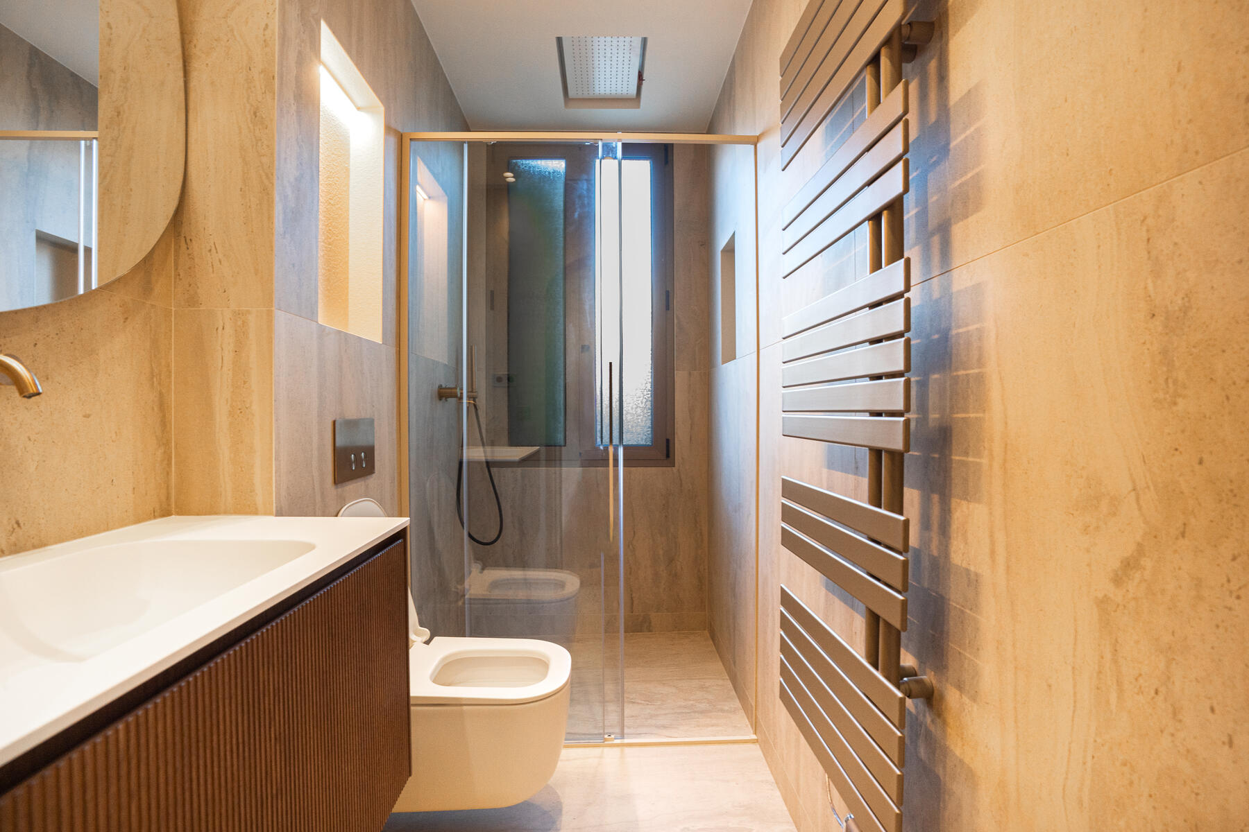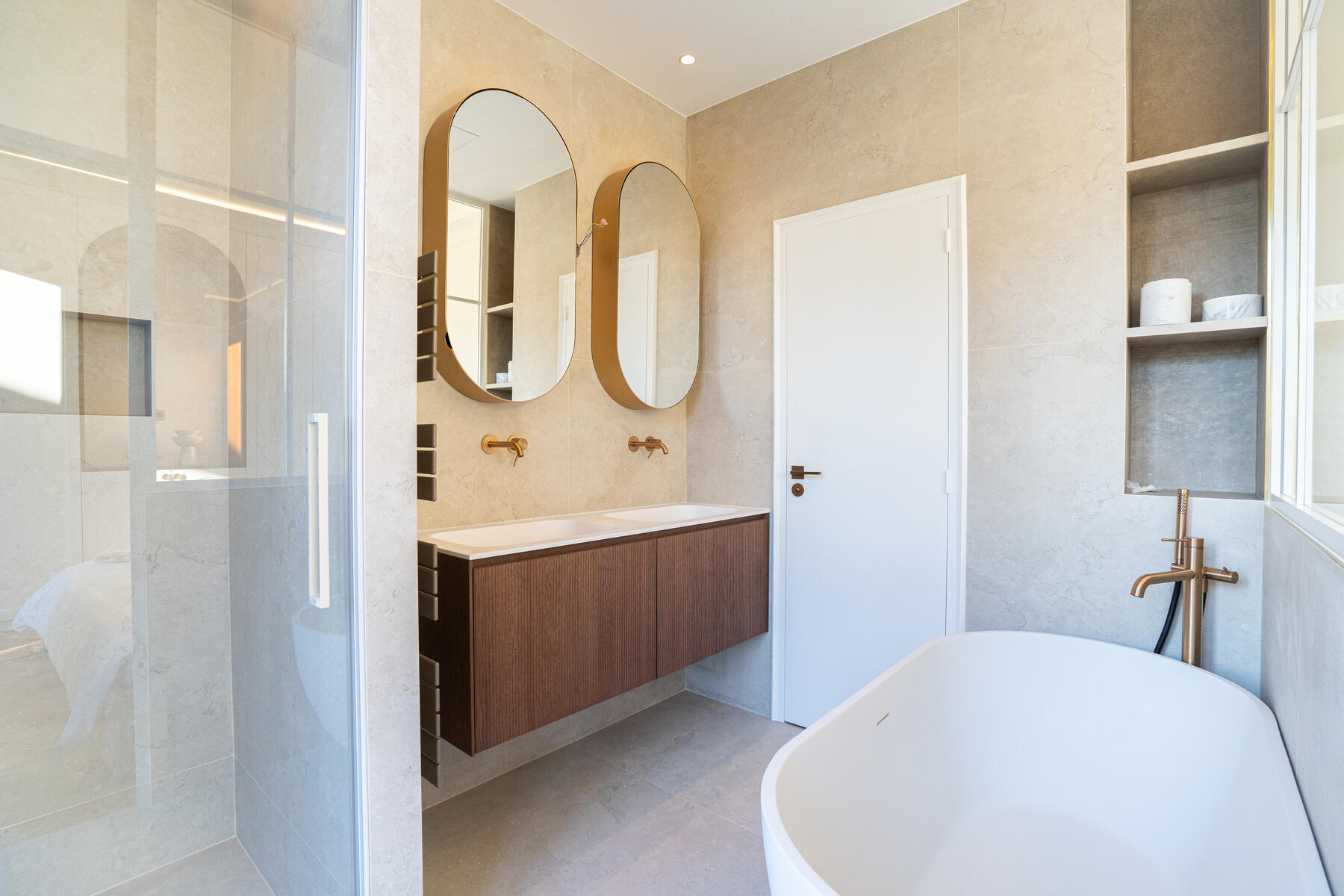 L'area notturna ha due camere da letto, ciascuna con un proprio bagno privato o una doccia, e offre accesso a due piacevoli terrazze, inclusa una veranda che offre spazio aggiuntivo per il bagno