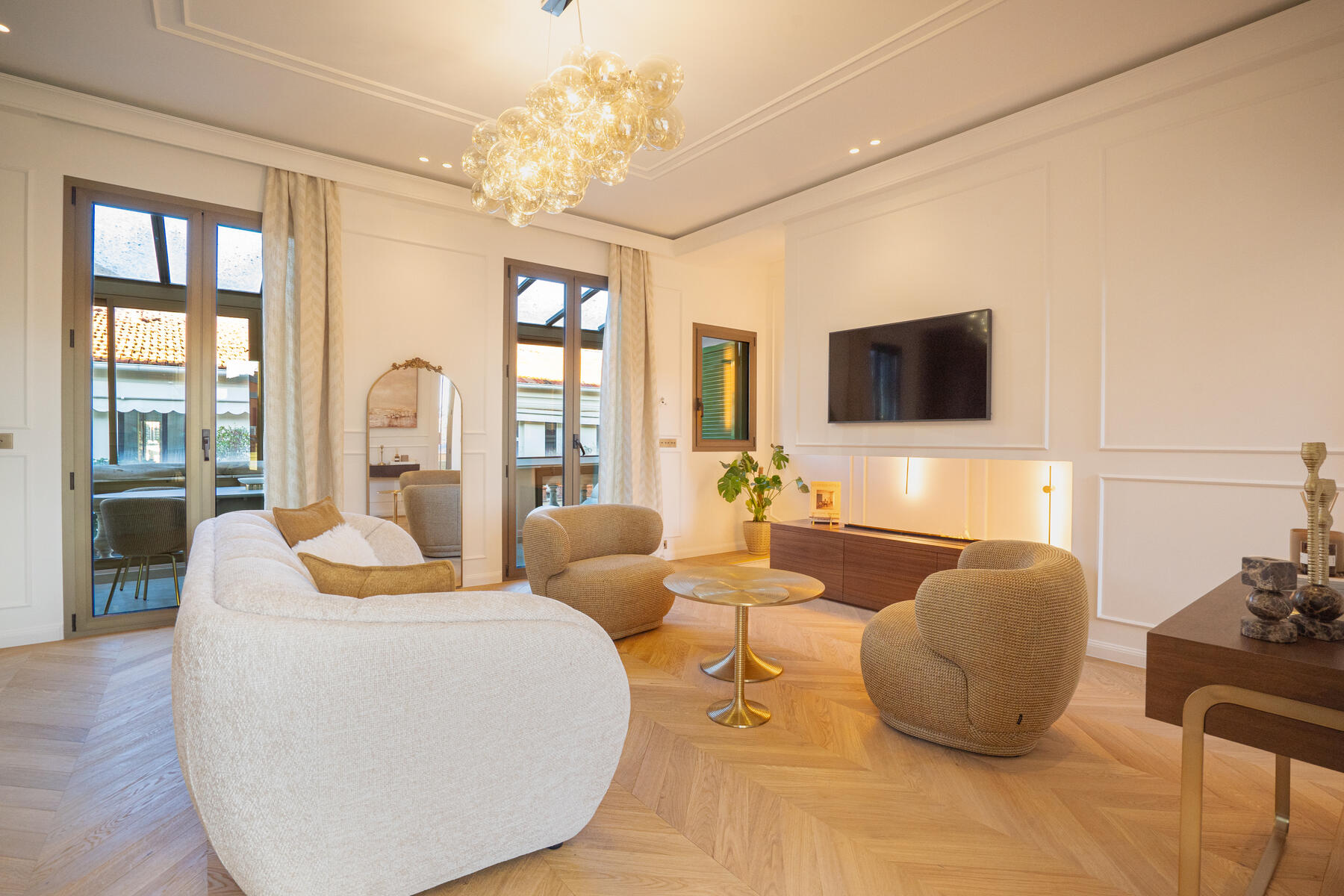 Lo spazio living ruota attorno a un soggiorno caldo con area pranzo e cucina americana attrezzata, che si apre su una terrazza intima ideale per godersi giornate di sole.
