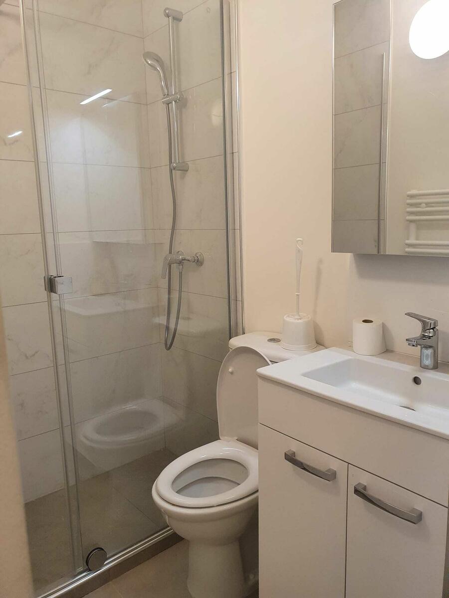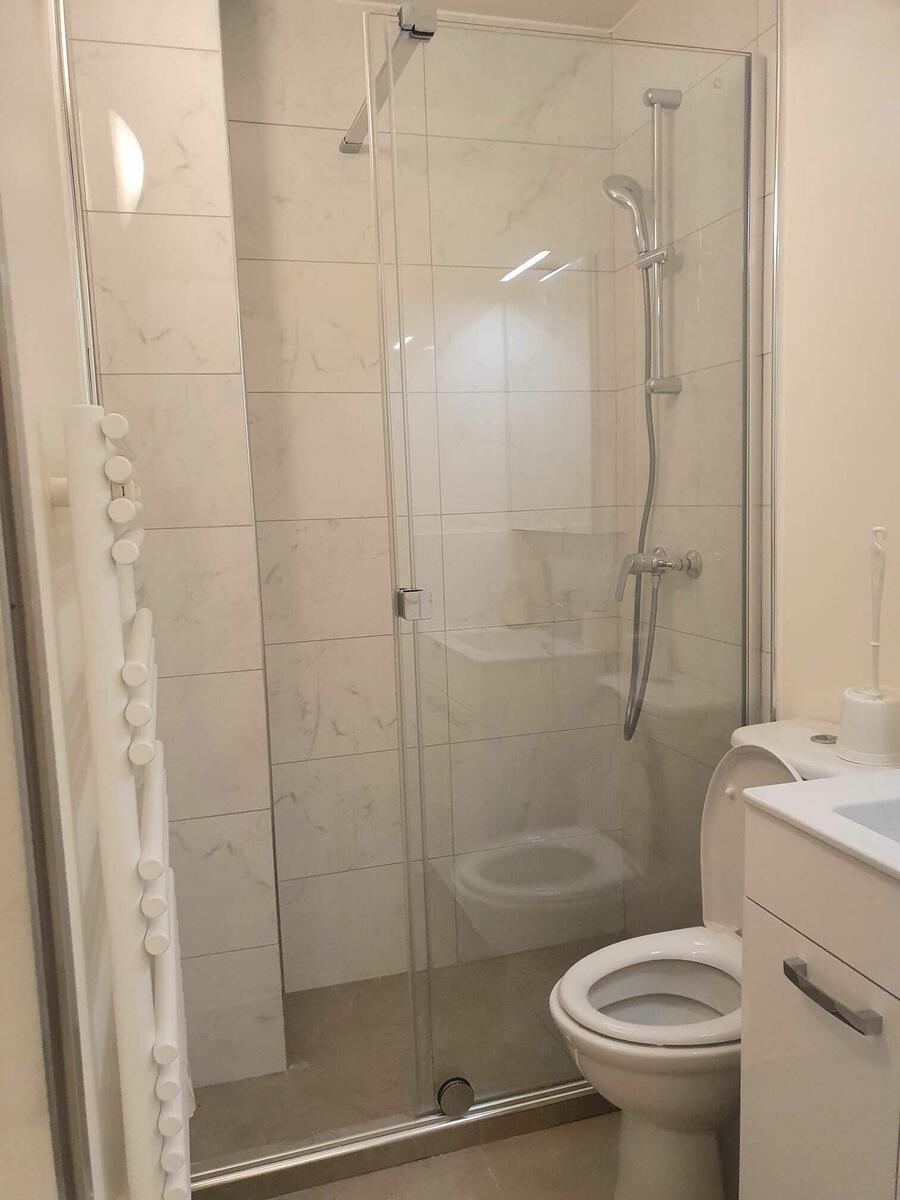 Questa proprietà è composta da un bagno (bagno, doccia, lavandino)