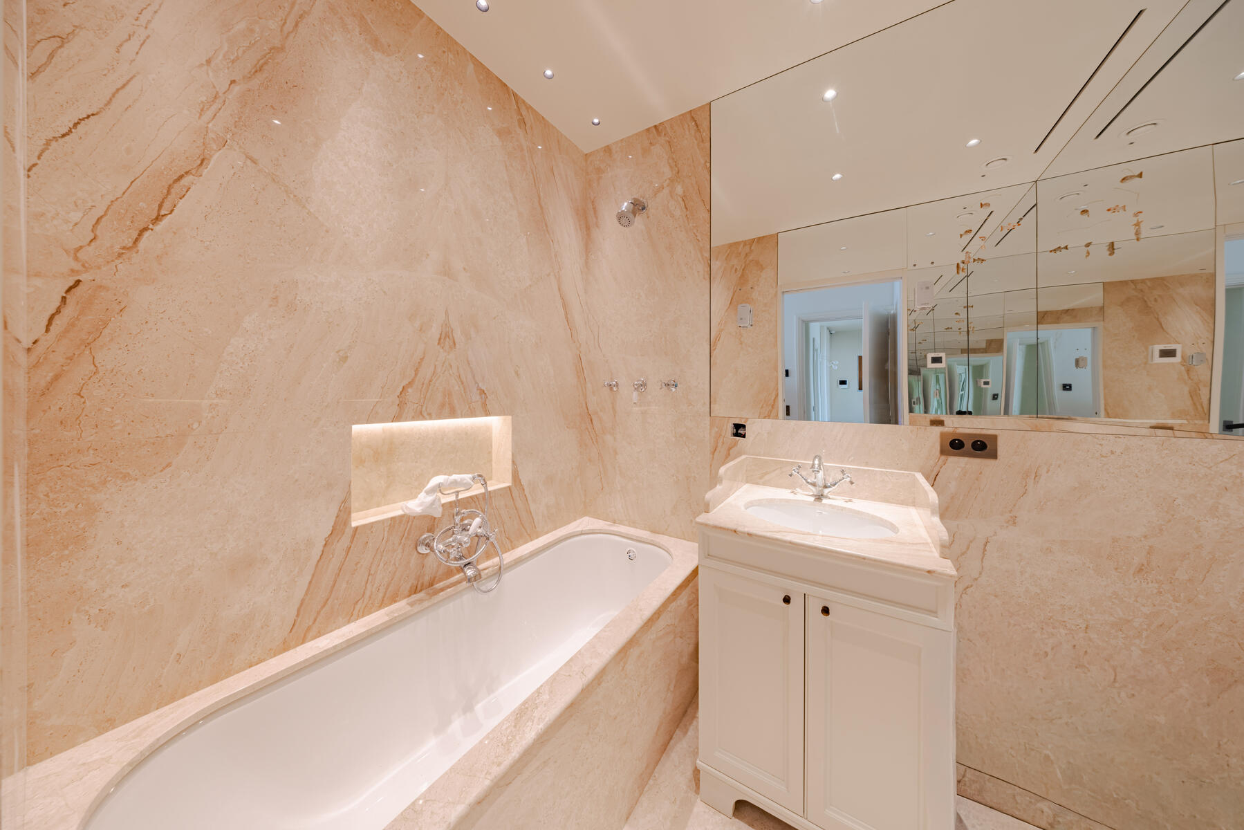 L’immobile comprende una cucina separata, un ingresso di servizio e bagni eleganti rifiniti in marmo.