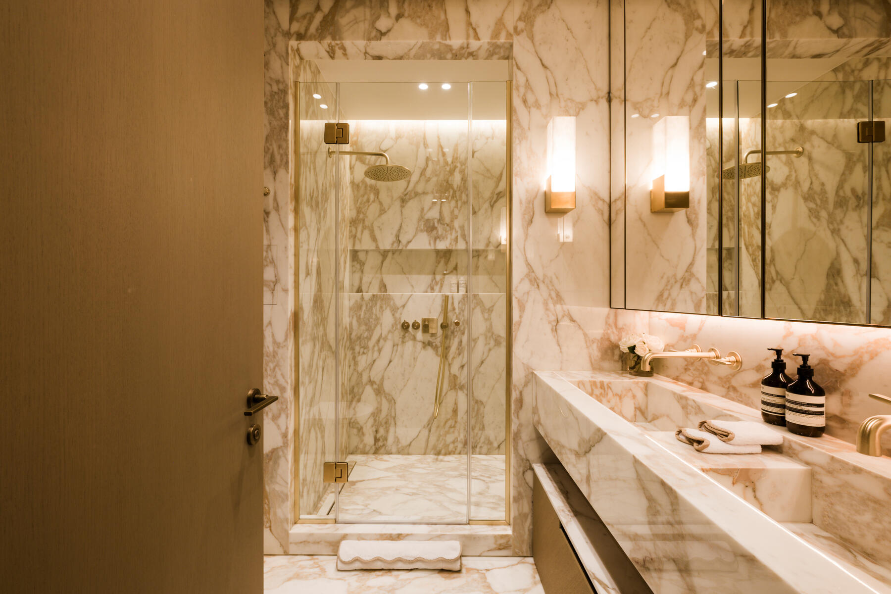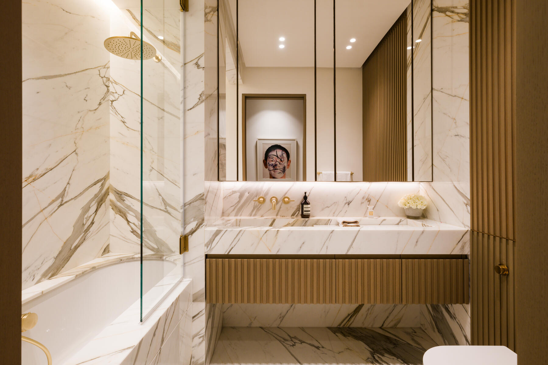L'APPARTAMENTO È STATO DOTATO DI UNA SPLENDIDA SCELTA DI MARMO, LEGNO PREGIATO E ELETTRODOMESTICI GAGGENAU