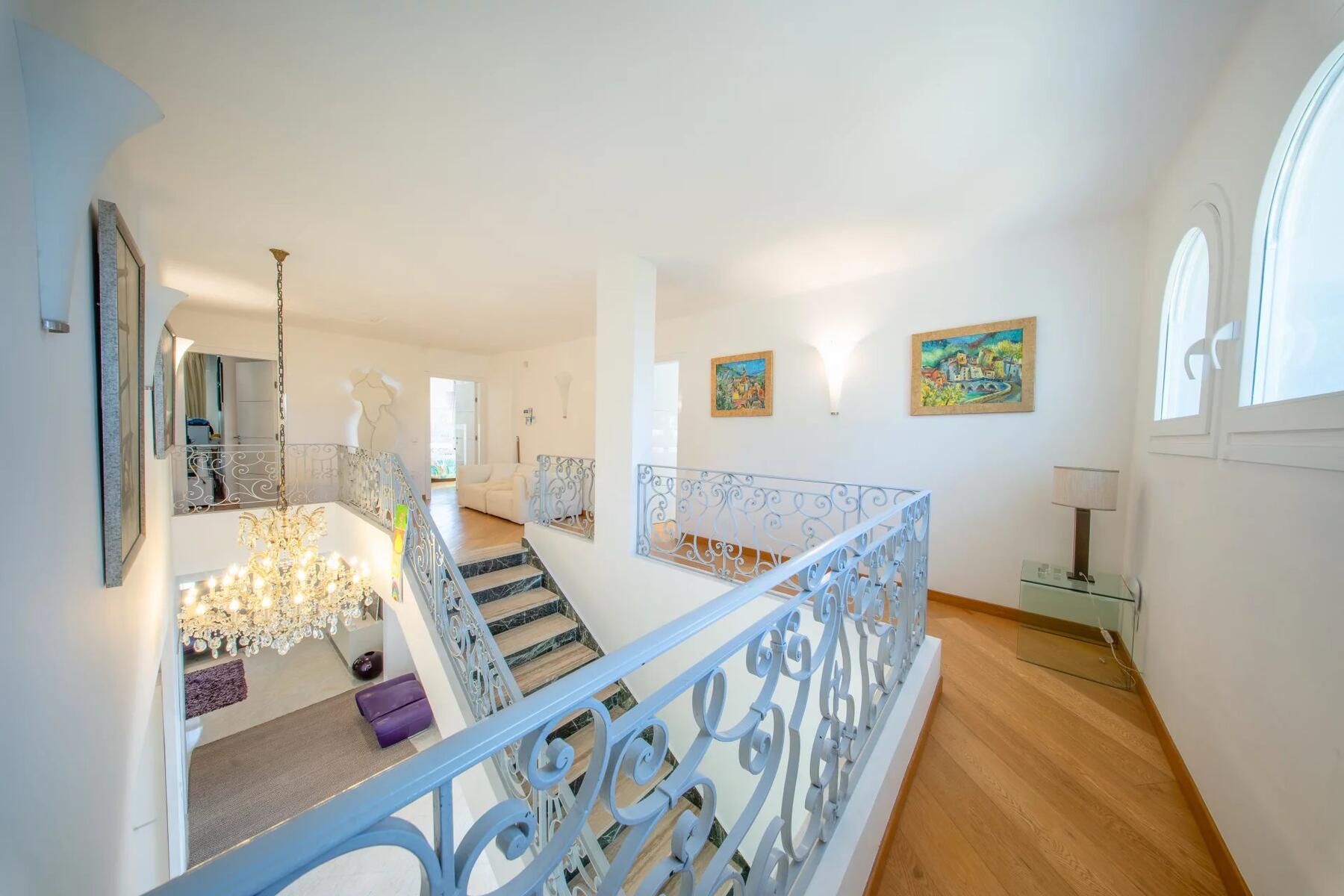 Edificata su un terreno di circa 1.600 m², la villa dispone di uno splendido giardino pianeggiante, un elemento particolarmente raro e molto ricercato in questa zona. La sua esposizione a sud garantisce una luminosità ottimale durante tutto il giorno.