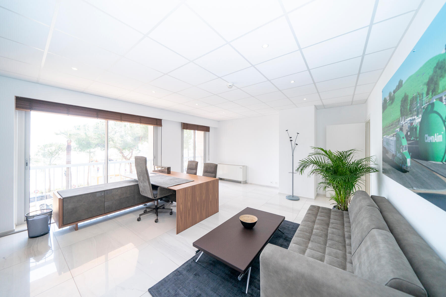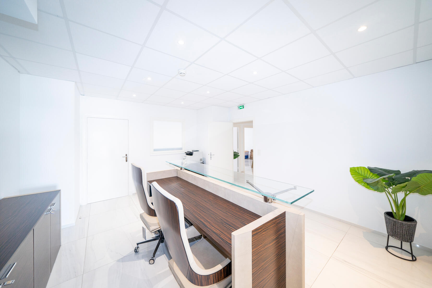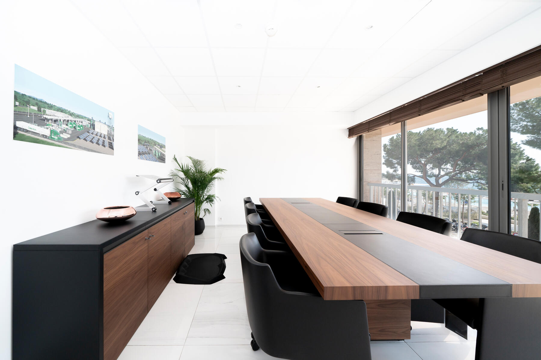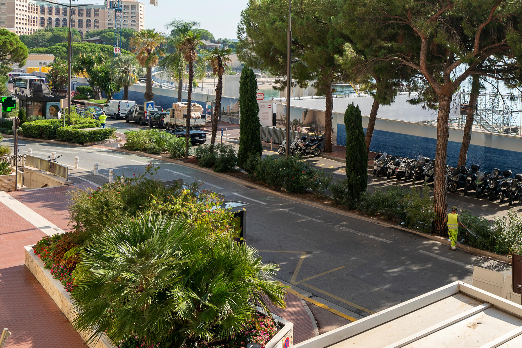 Ampi uffici di 6 locali per un totale di 222 mq al primo piano dell'Estoril. Si compongono di una hall d'ingresso con bagni per gli ospiti, due grandi uffici con vista sulla galleria dell'edificio, un ufficio communicante ideale come sala riunioni, e infine tre grandi uffici con vista sul mare con due bagni di cui un ampio bagno con doccia.