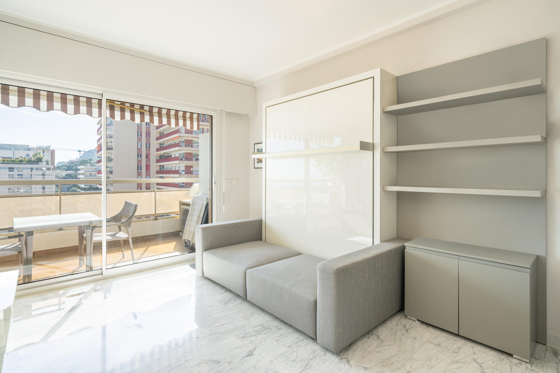 Con una superficie abitabile di 32 mq e 10 mq di terrazza. Situato su un piano alto, questo grazioso monolocale è stato completamente ristrutturato. È esposto a sud e gode di una bellissima vista sul mare.