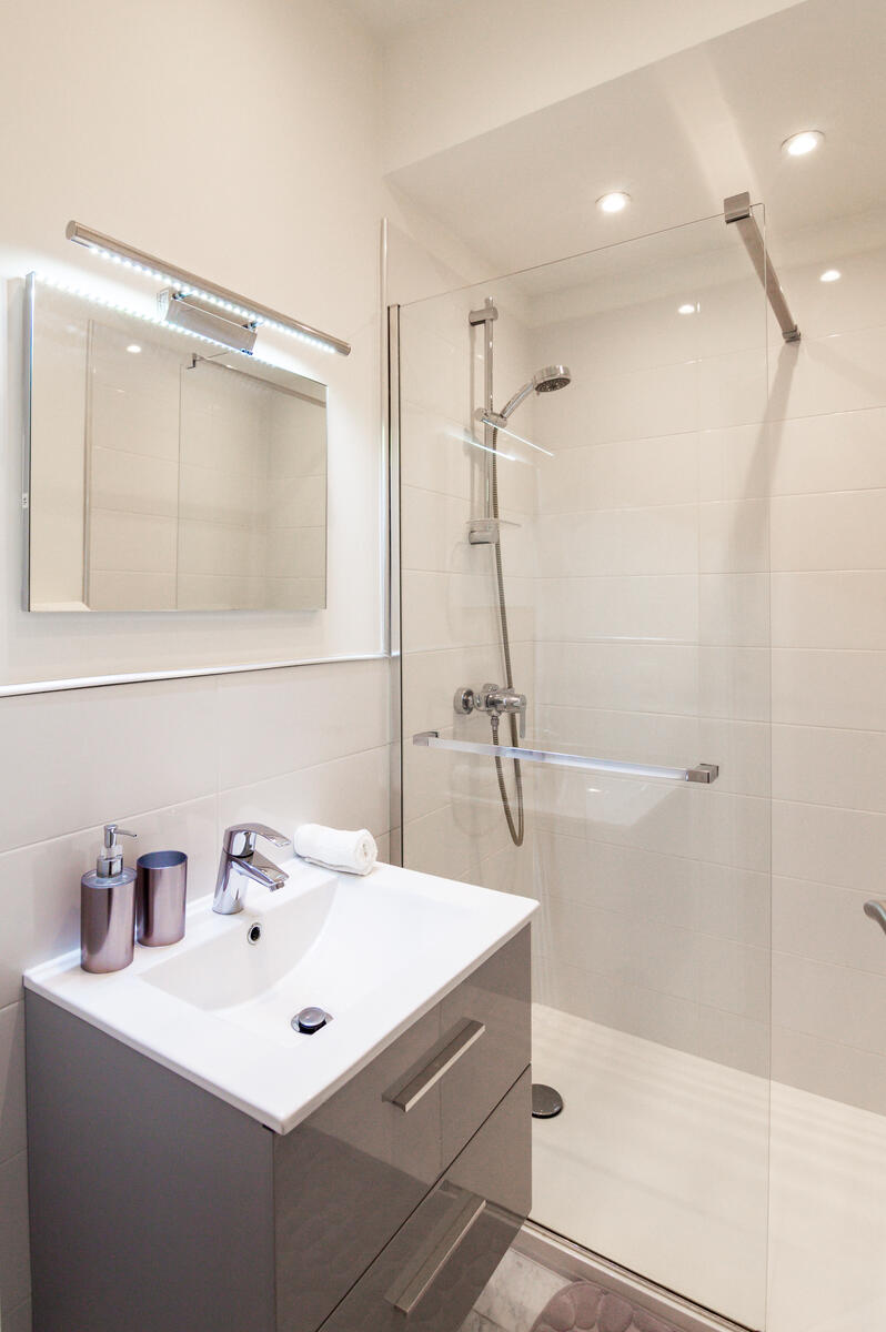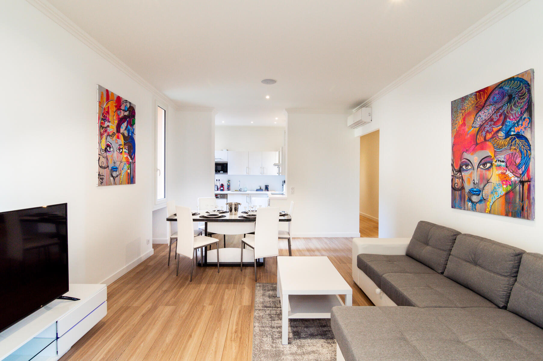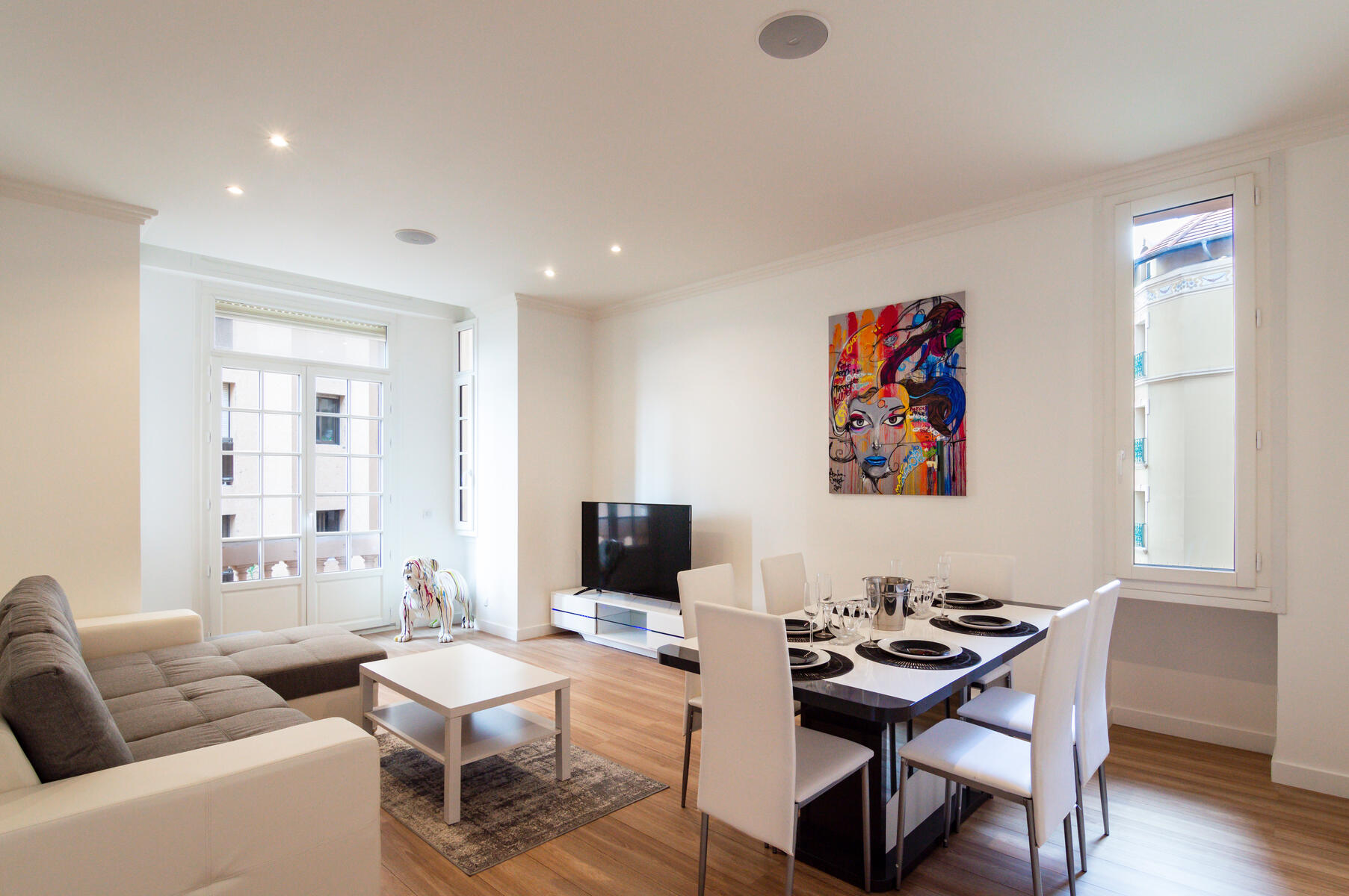 Completamente ristrutturato, molto luminoso, questo appartamento offre un grande soggiorno, una cucina completamente attrezzata, 3 camere da letto ciascuna con la propria doccia e un bagno per gli ospiti.