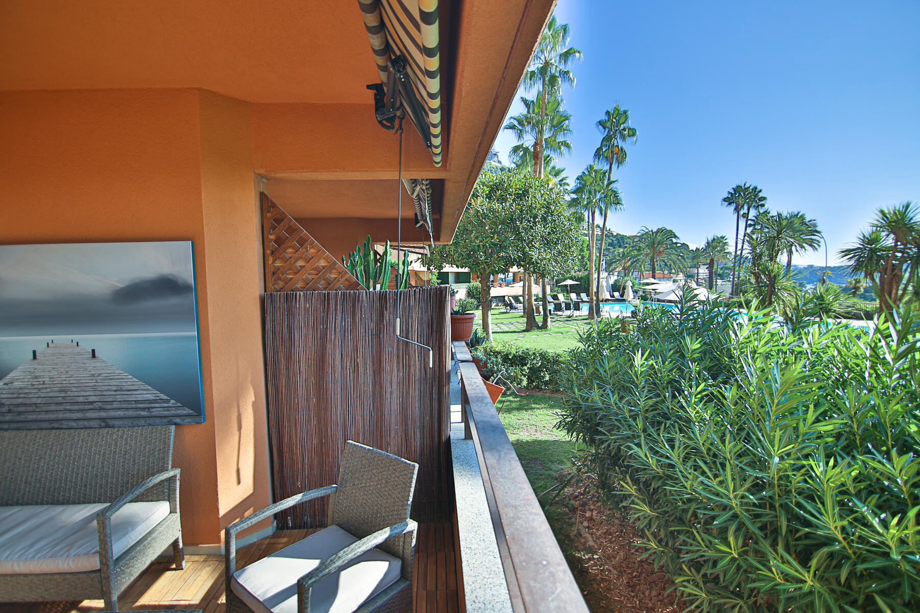 Situato in una residenza di lusso una delle più belle e conosciute del Principato, servizio di sicurezza 24h/24, vicino al Monte-Carlo Country Club e al Monte-Carlo Beach Club. Meraviglioso parco con grande piscina circondata da palme, solarium, snack bar, sauna, sala fitness. Uno al primo piano situato cucina soggiorno e terrazza. Al piano terra la sua camera da letto con bagno separato e spogliatoio. Arredato completamente.
